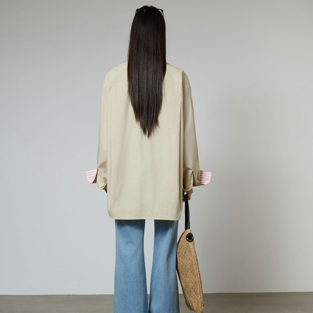 オーバーサイズのゆったりシルエットは、開けて羽織りとして使っても、ボタンを閉めて単品使いも◎