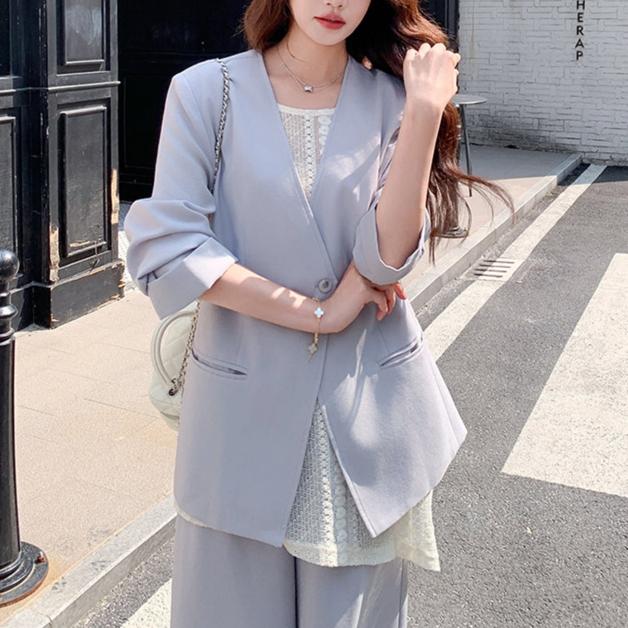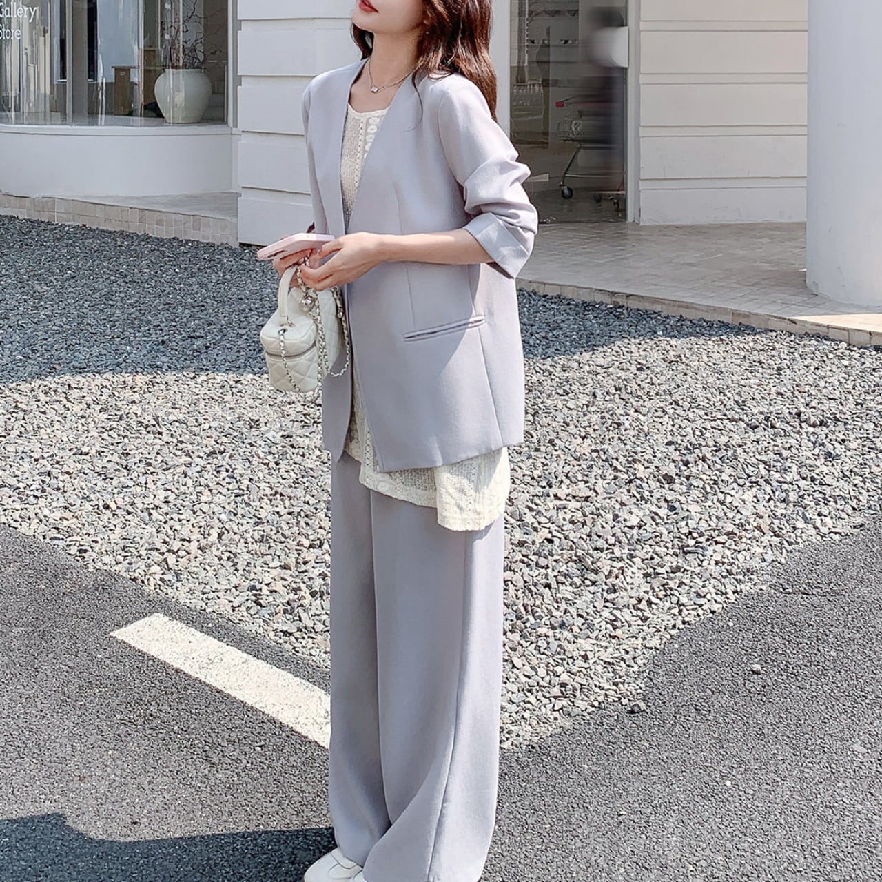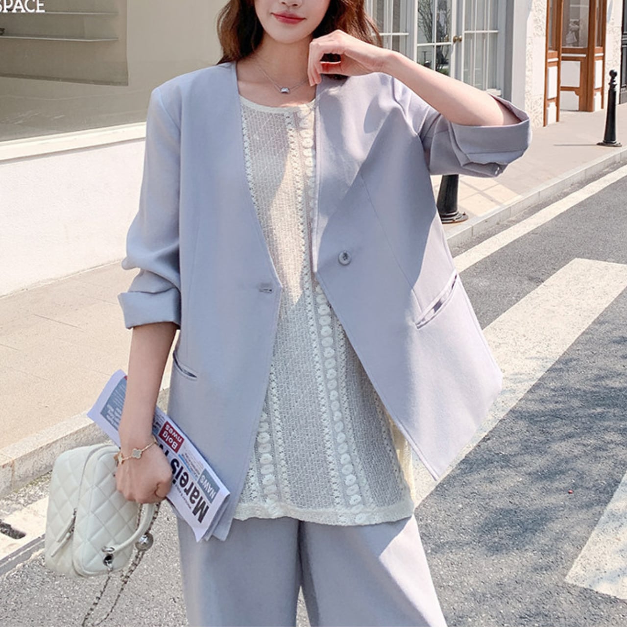 ジャケット・レースベスト・ワイドパンツの三点が絶妙なバランスで揃ったセットアップが、着るだけでスタイリングを完成させます。