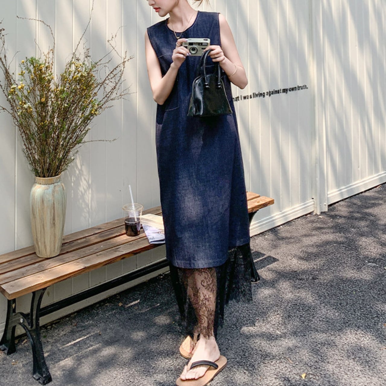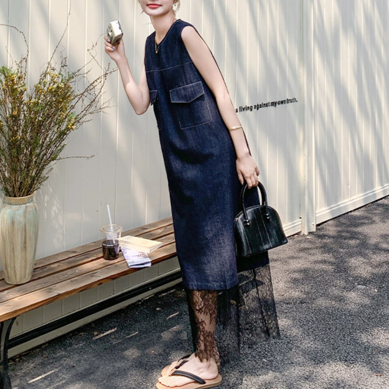 無骨で力強いデニムと、繊細で女性らしいレースを一枚に重ね合わせたパッチワークデザイン。