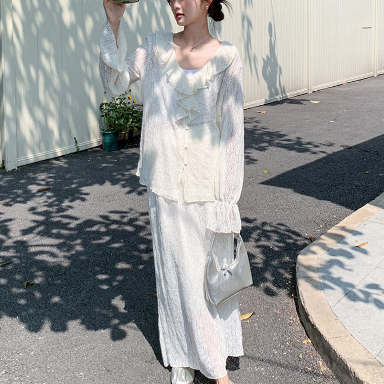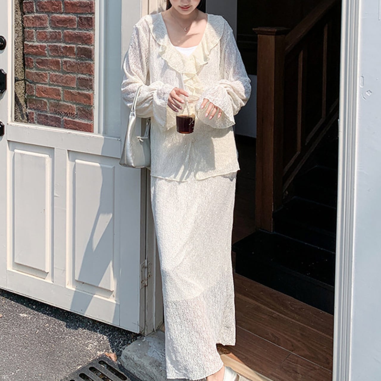 そんな一瞬を切り取ったような、儚くて美しいホワイトのセットアップです。