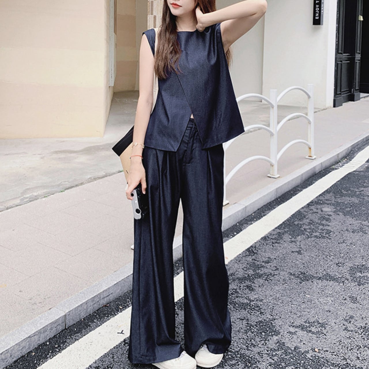 Asymmetrical vest & wide pants set S1924