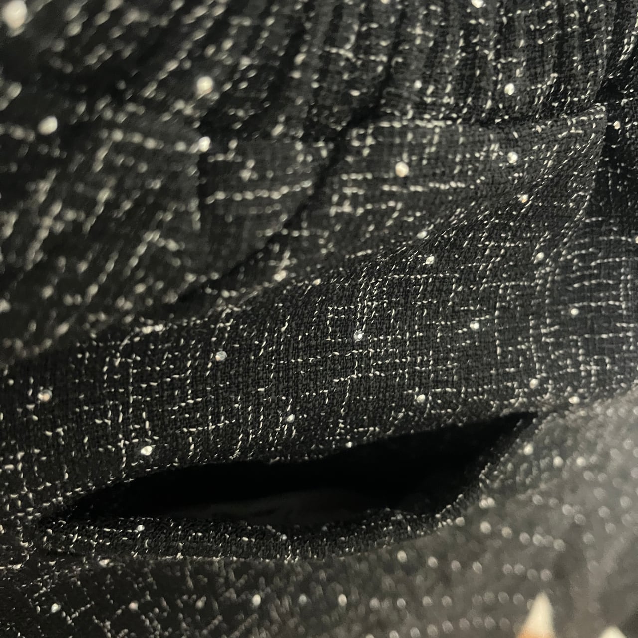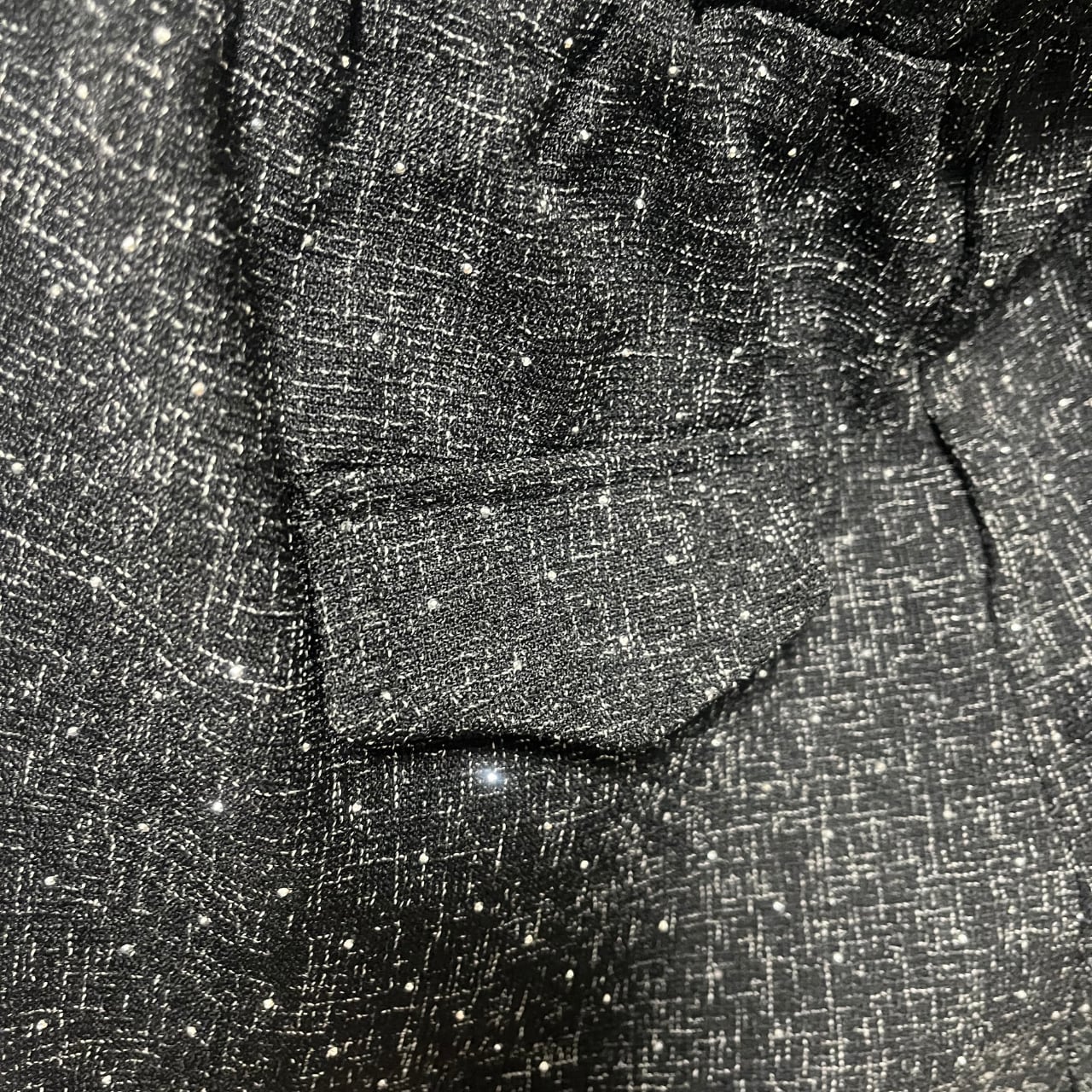 深いブラックに散りばめられた繊細なドット柄が、まるで星空のような美しい輝きを放ちます。派手すぎず地味すぎない絶妙なバランスで、大人の女性にふさわしい品格のある華やかさを演出。