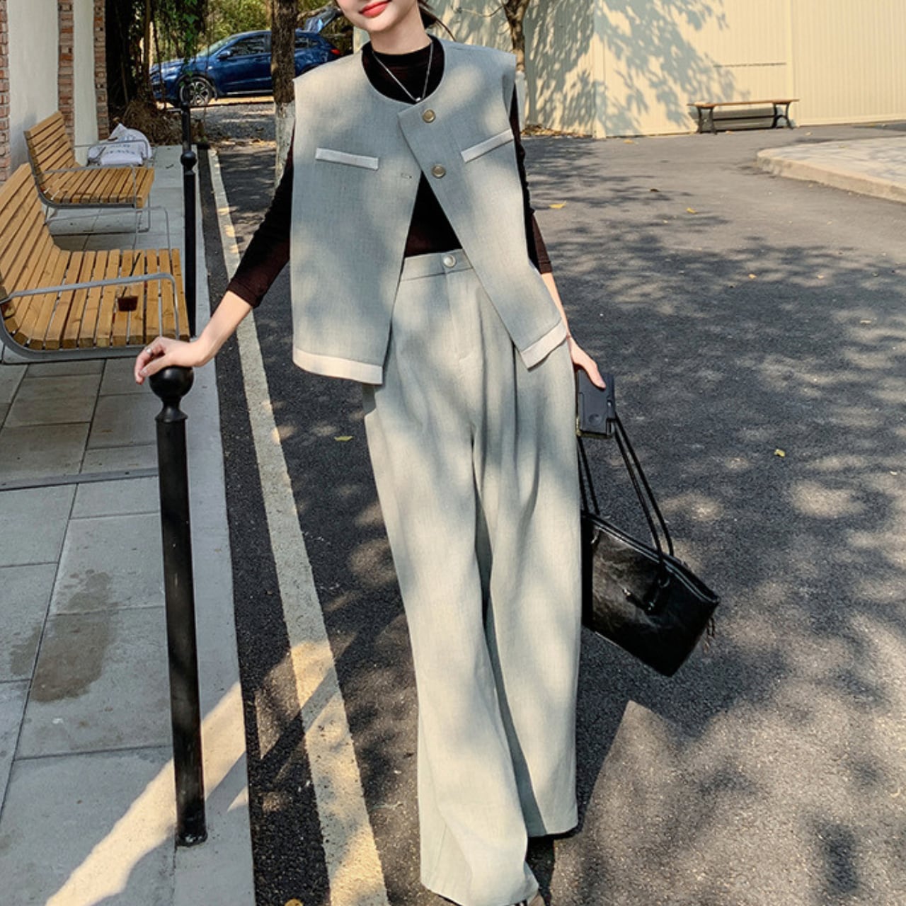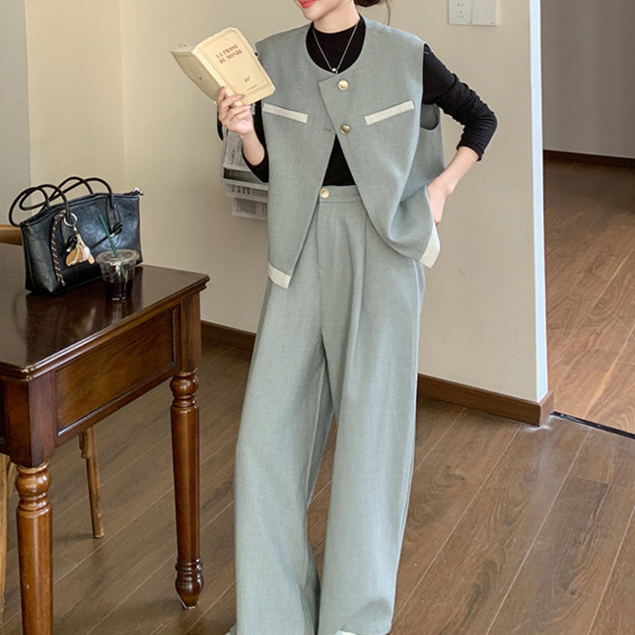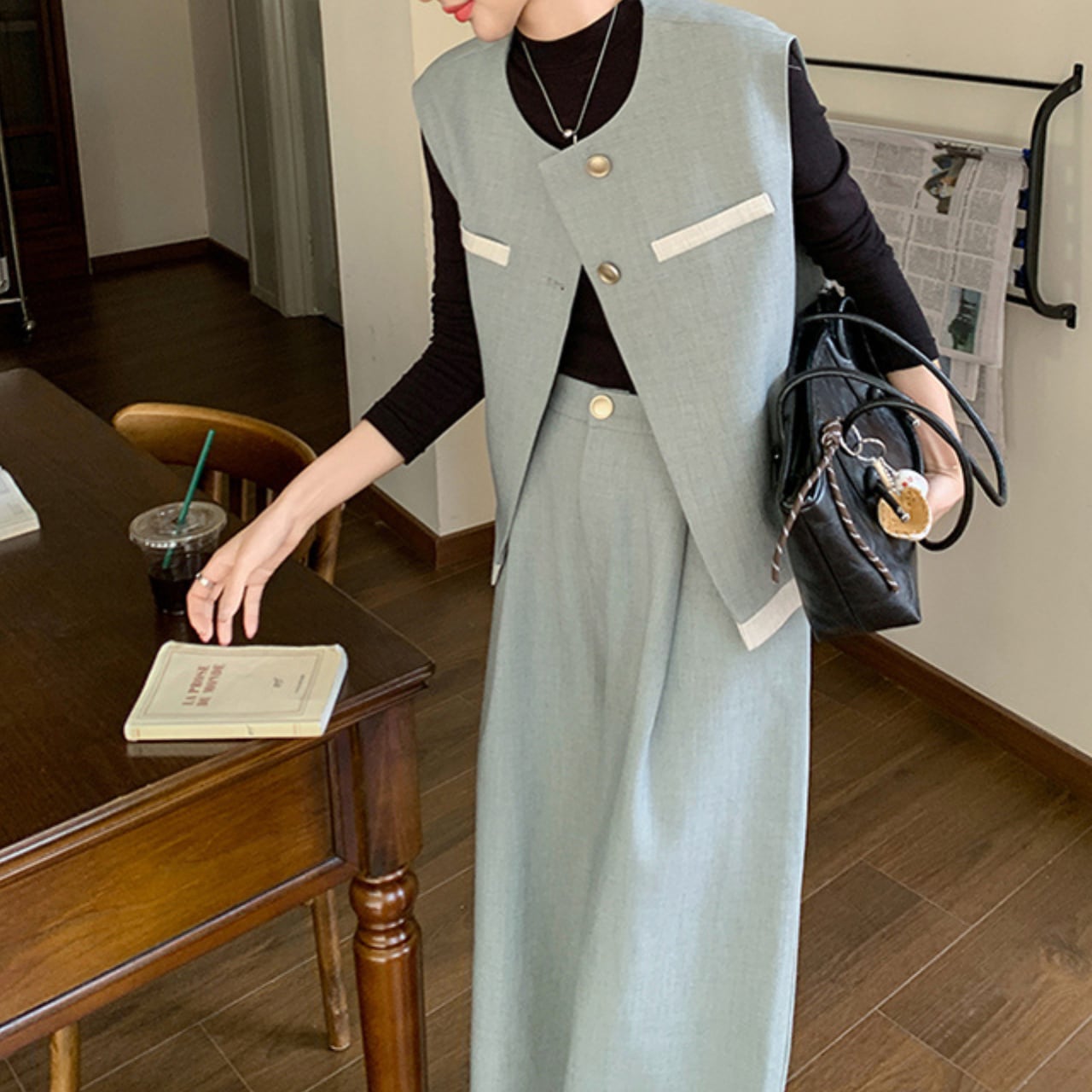 【XLサイズ即日発送】Contrast color vest & wide pants set S1573