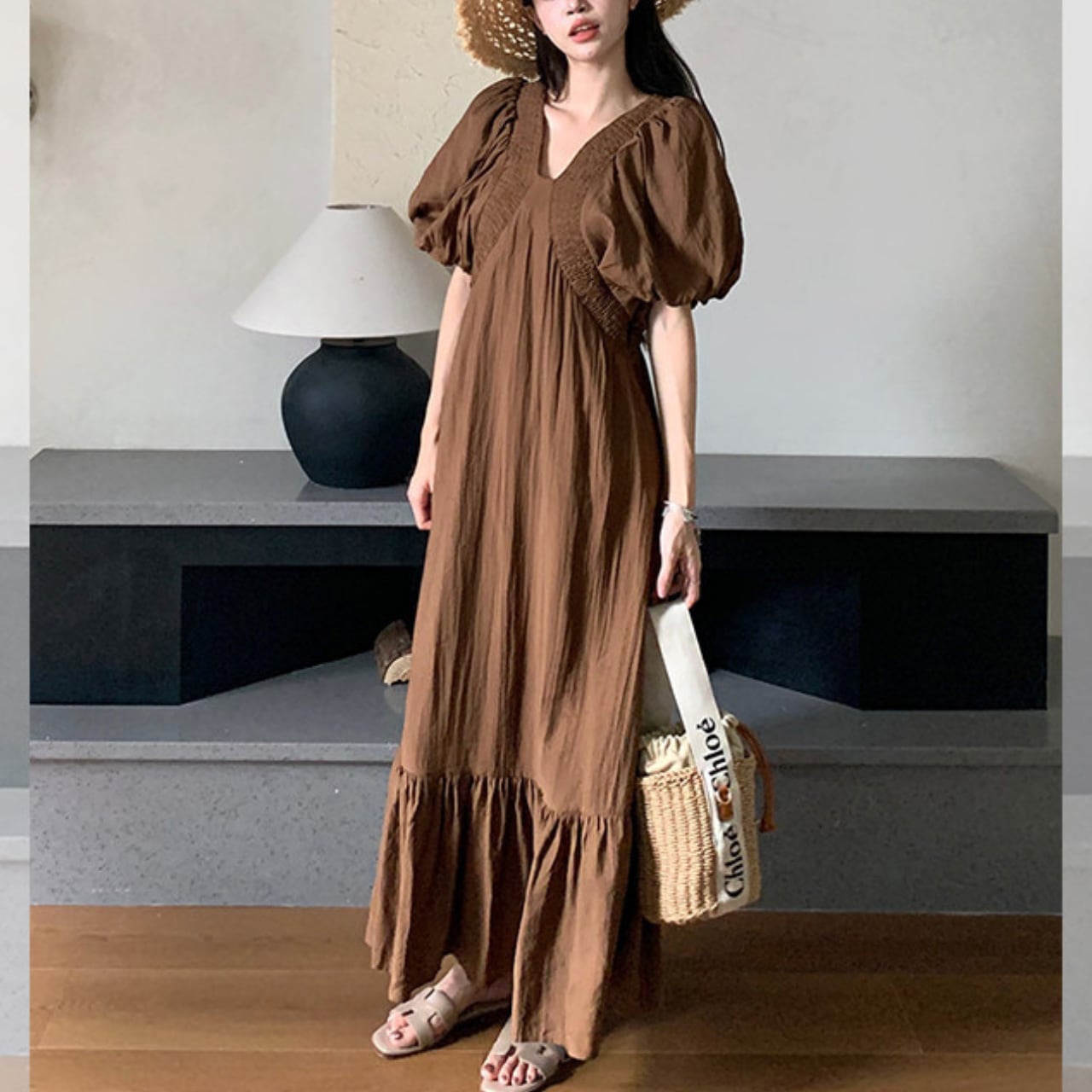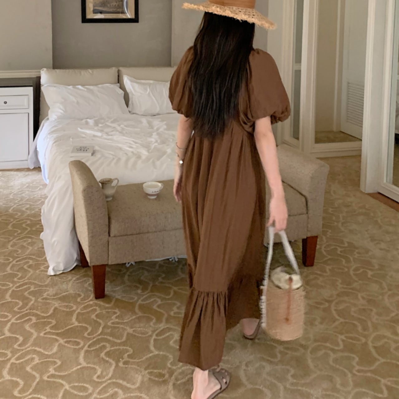 Puff sleeve V-neck dress S1935
