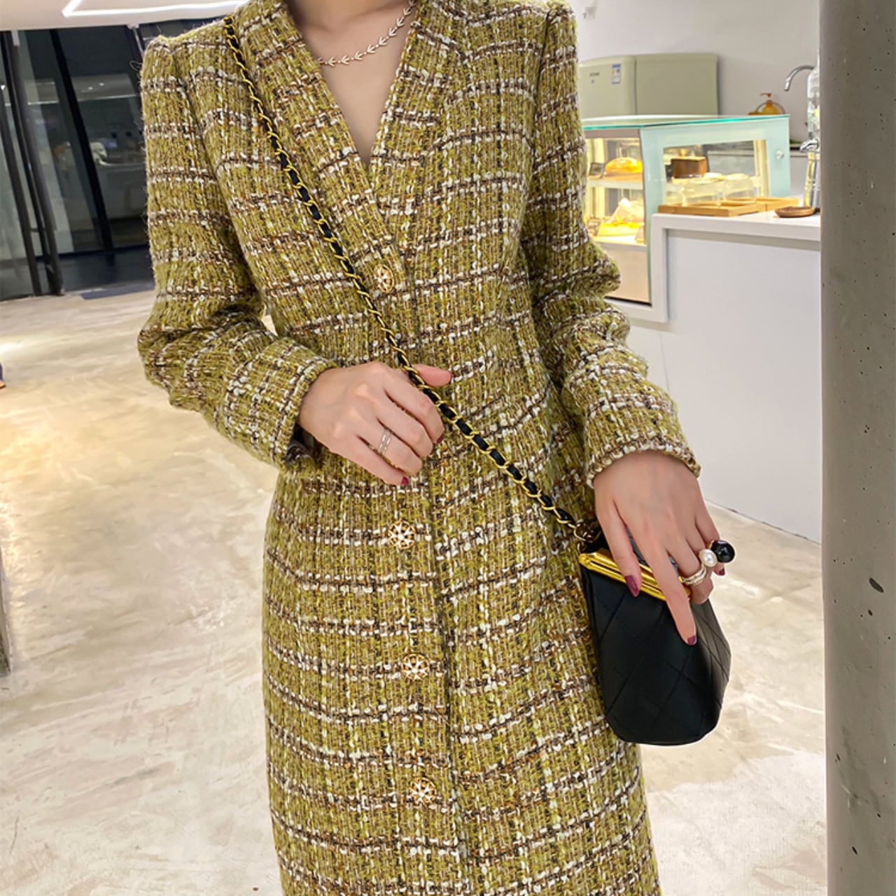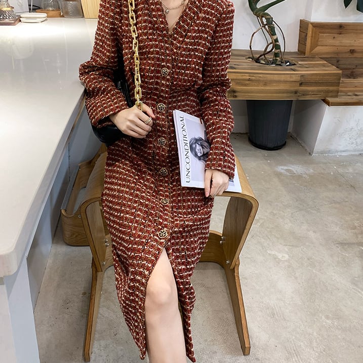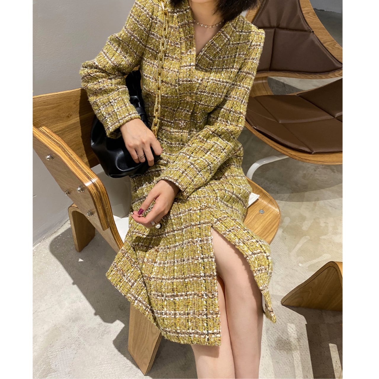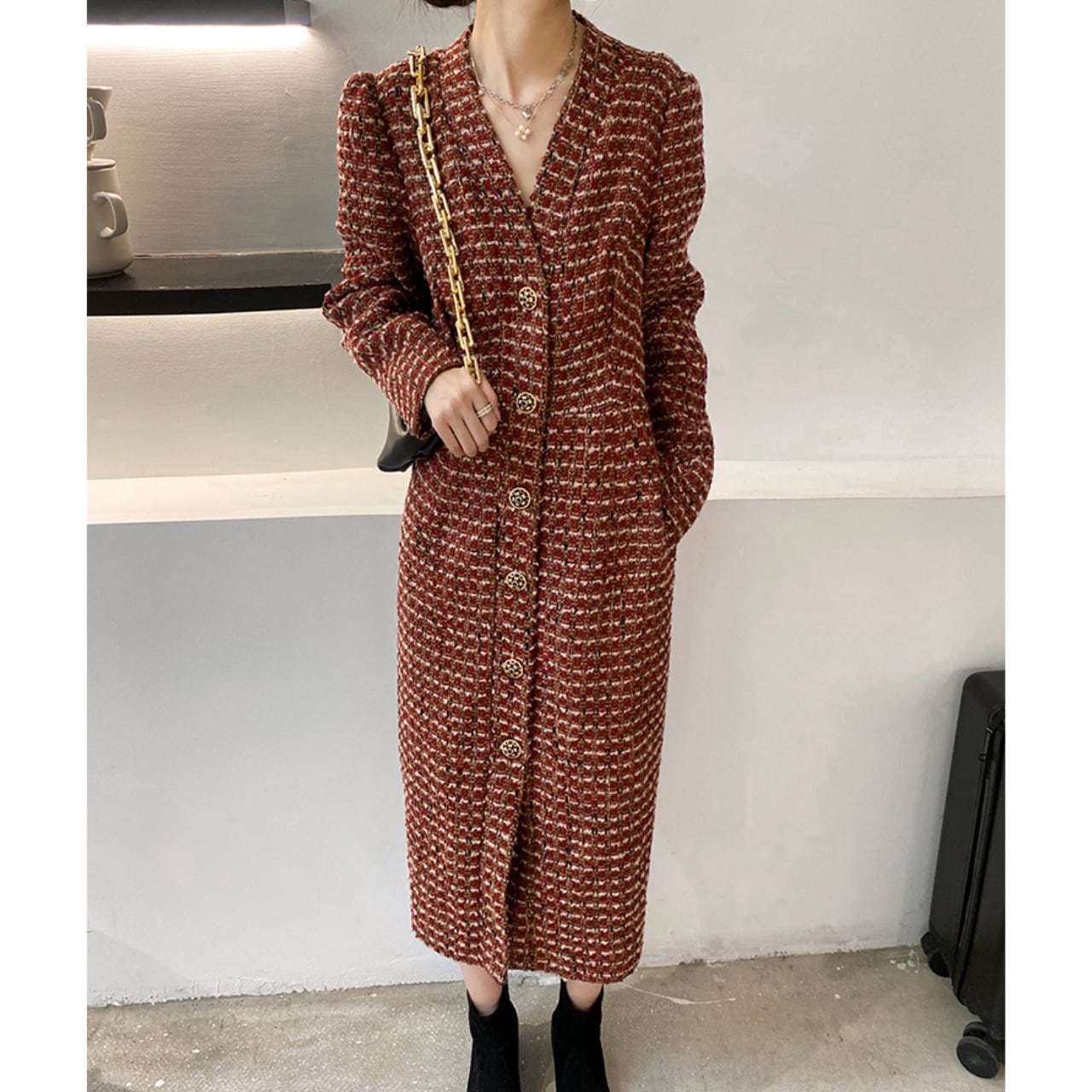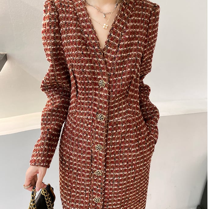 〜パリジェンヌが愛する、クラシックモダンの美学〜 高級感あふれるツイード素材を使用したVネックワンピース。 一着でエレガントなスタイリングが完成します。 フロント全体に配されたゴールドボタンが、クラシカルな中にも華やかさをプラス。 ボタンを開け閉めすることで、シーンに合わせた着こなしが楽しめます。 ✔️オススメのスタイリング ・ブーツを合わせて季節感のあるスタイリング。 ・ヒールにハンドバッグを持って夜のお出かけコーデ。 ・コートやジャケットを羽織ってレイヤードコーデを楽しむ。 ■カラー ・レッド ・イエロー ■サイズ S 着丈:105cm 胸囲:92cm 肩幅:35 ウエスト:70cm 袖丈: 59.5cm M 着丈:106cm 胸囲:96cm 肩幅36:cm ウエスト:74cm 袖丈:60.5cm L 着丈:107cm 胸囲:100cm 肩幅:37cm ウエスト:78cm 袖丈:61.5cm XL 着丈:108cm 胸囲:104cm 肩幅:38cm ウエスト:82cm 袖丈:62.5cm 2XL 着丈:109cm 胸囲:108cm 肩幅:39cm ウエスト:86cm 袖丈:63.5cm ※採寸方法により1~3cmの誤差がある場合がございます。 ■素材 トリアセテート繊維100% ■商品番号 S09 ・・━━・・━━・・━━・・━━・・━━・・━━・・ 【お届けについて】 当ショップの商品は海外より取り寄せ・発送となる為、ご入金から2~3週間前後で発送いたします。 【お支払い方法について】 ・クレジットカード決済(VISA/Master/JCB/AMERICAN EXPRESS) ・キャリア決済(docomo/au/Softbank/Y!mobile) ・あと払い Pay ID 決済 【注意事項】 ・商品の在庫切れや生産中止、生産遅延が発生した場合は、注文キャンセルをさせていただく恐れがございます。予めご了承くださいませ。 ・こちらは輸入品となります。日本製品とは検品基準が異なるため、新品未使用品でもごくわずかな汚れや傷がある場合もございます。 ・イメージ違いやサイズ・カラー相違による返品・交換はお断りしております。 ・お手持ちのスマートフォンやパソコンの液晶環境によって、商品のお色味が若干異なる場合がございます。 ・発送時期によりデザイン仕様(素材や細部)の変更がある場合がございます。 ご購入前にこちらをお読みください →https://solemy.base.shop/about ・・━━・・━━・・━━・・━━・・━━・・━━・・