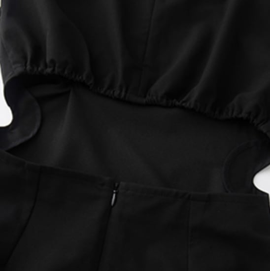 洗練されたショルダーラインと、大胆に開いたウエストのカットアウトデザイン。