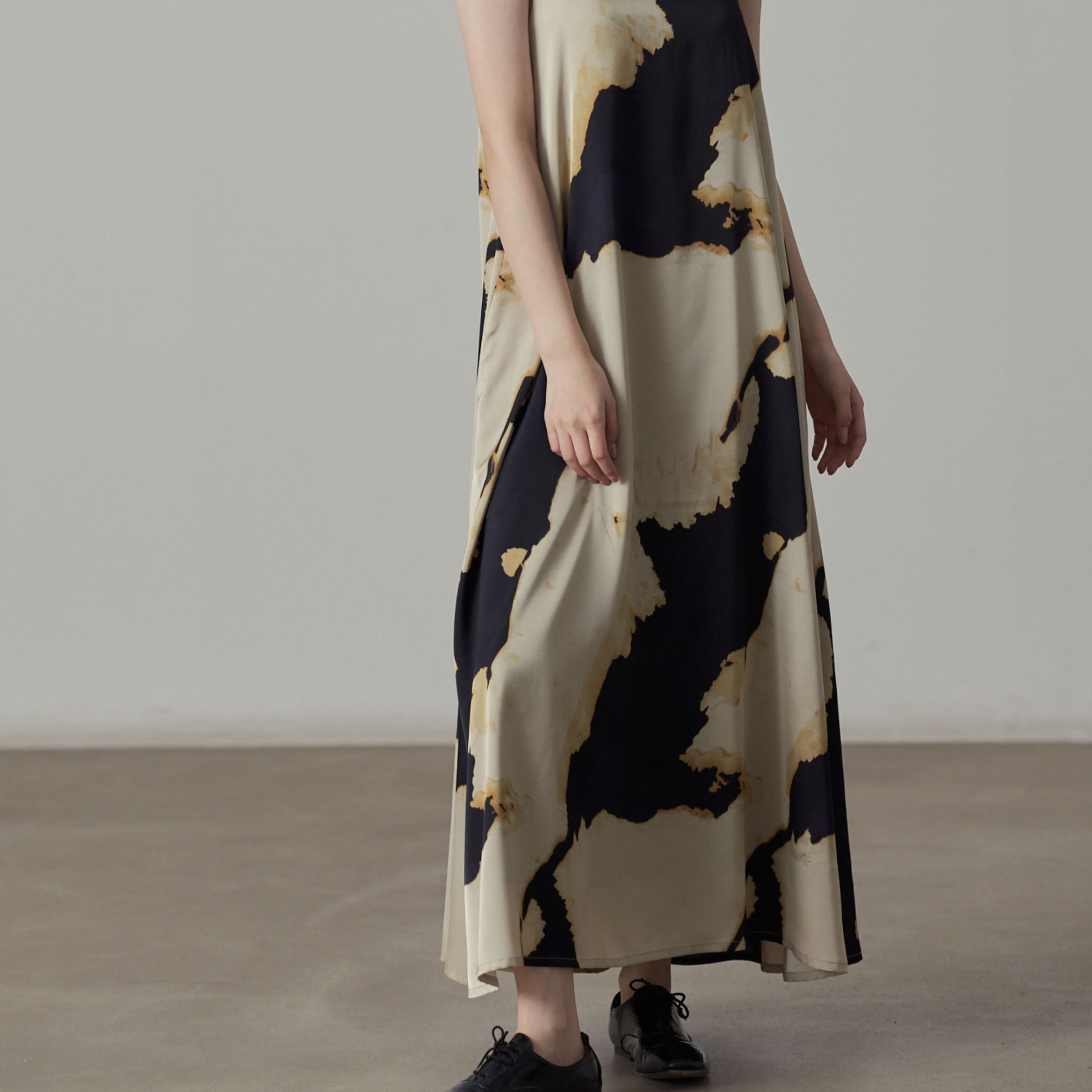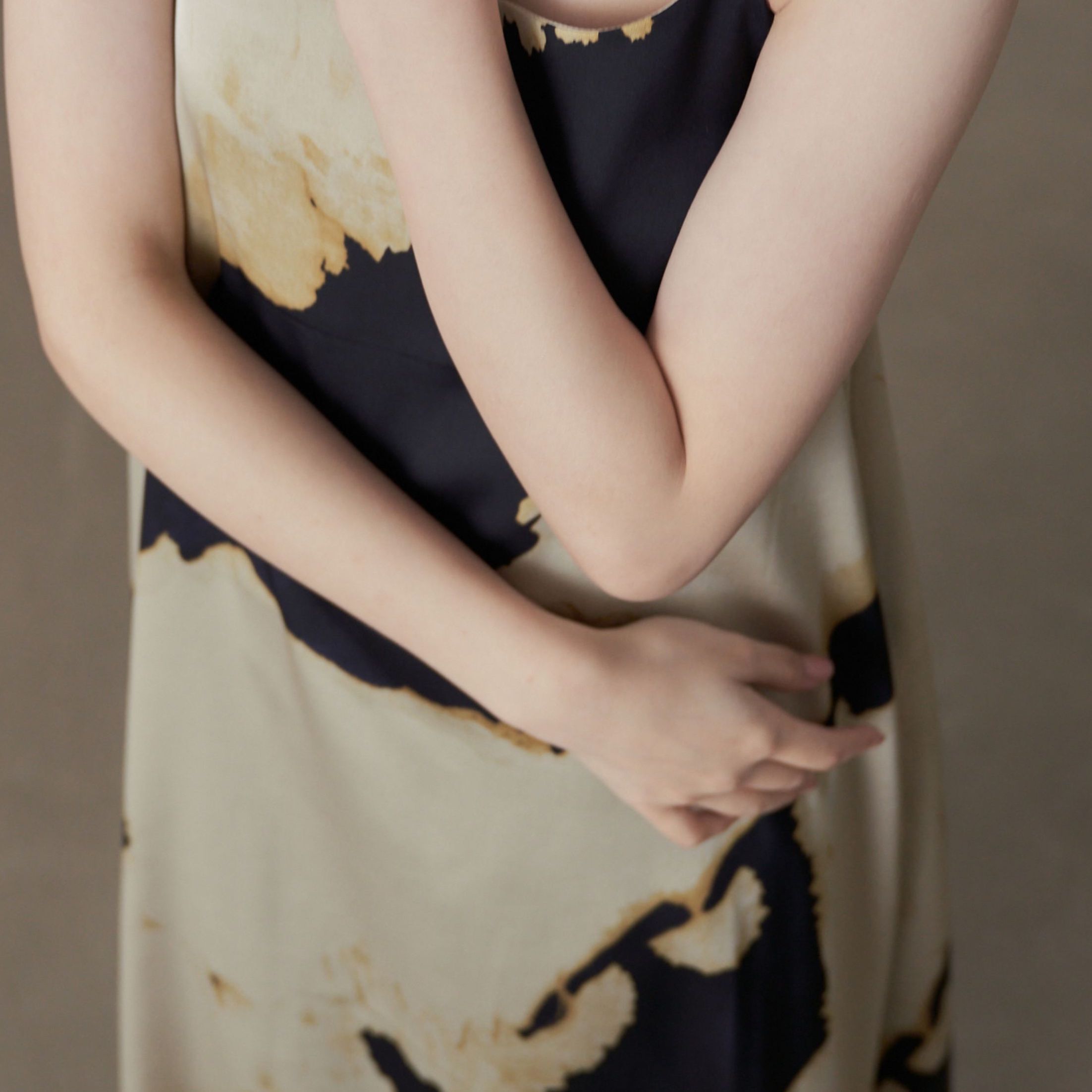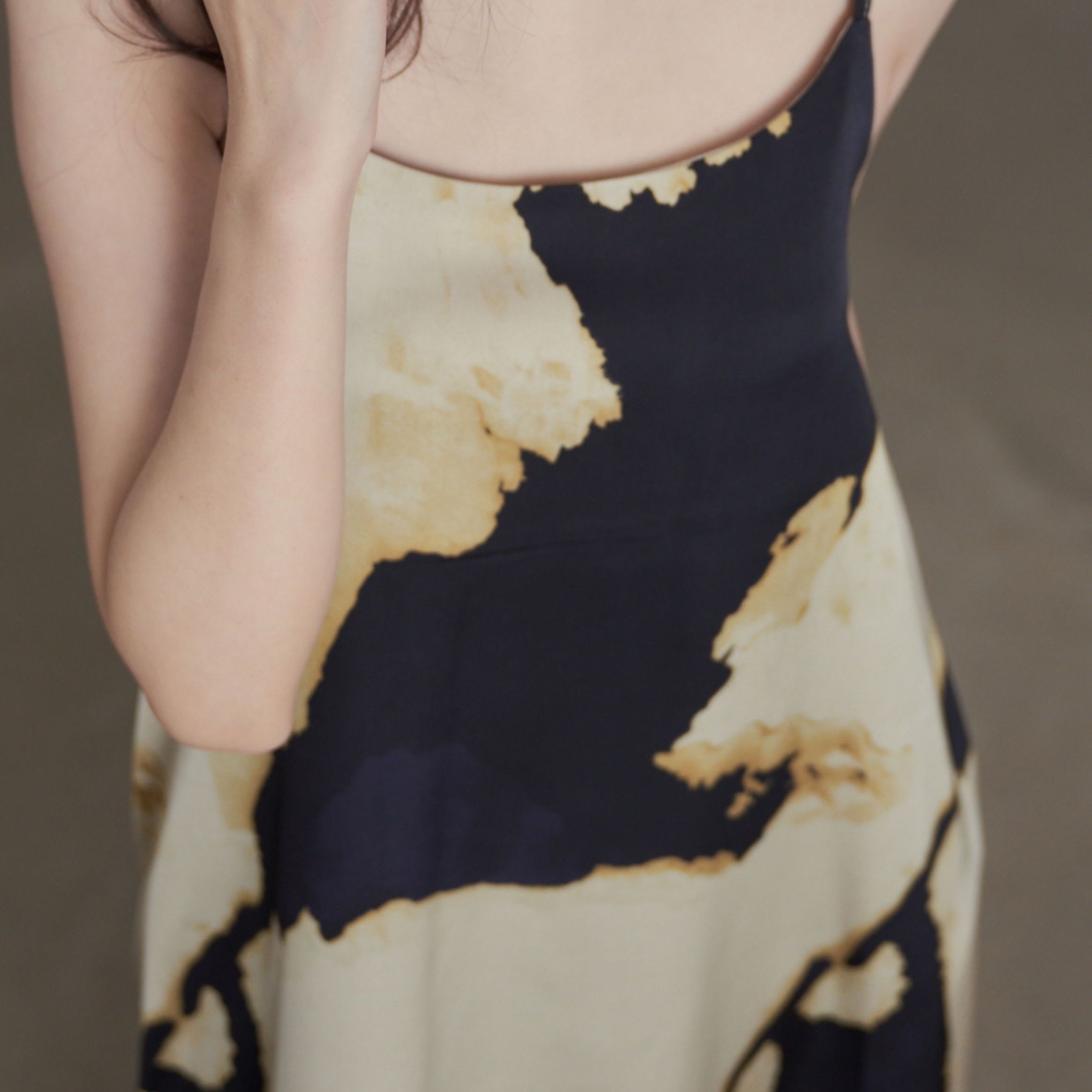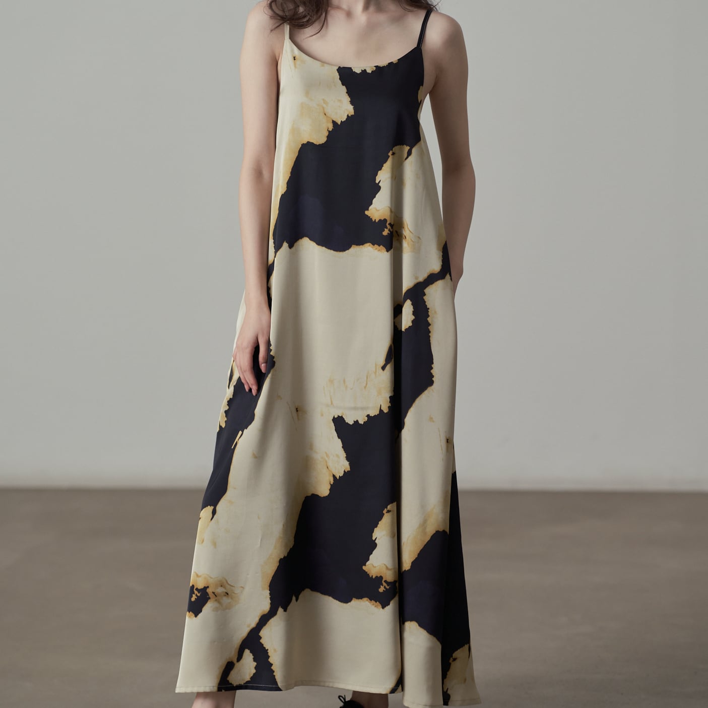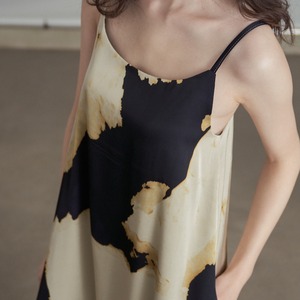 洗練されたアブストラクト柄が魅力的な、大人の女性のためのキャミワンピース。