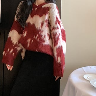 Retro contrast mohair sweater S20