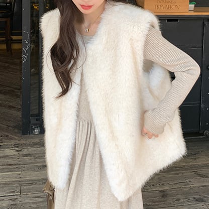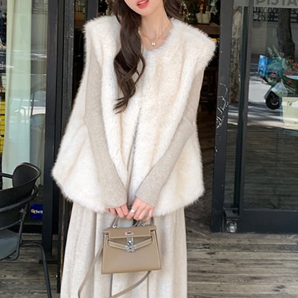 ふんわりと柔らかなファー素材が、冬のコーディネートに温もりと華やかさをプラスするファーベスト。