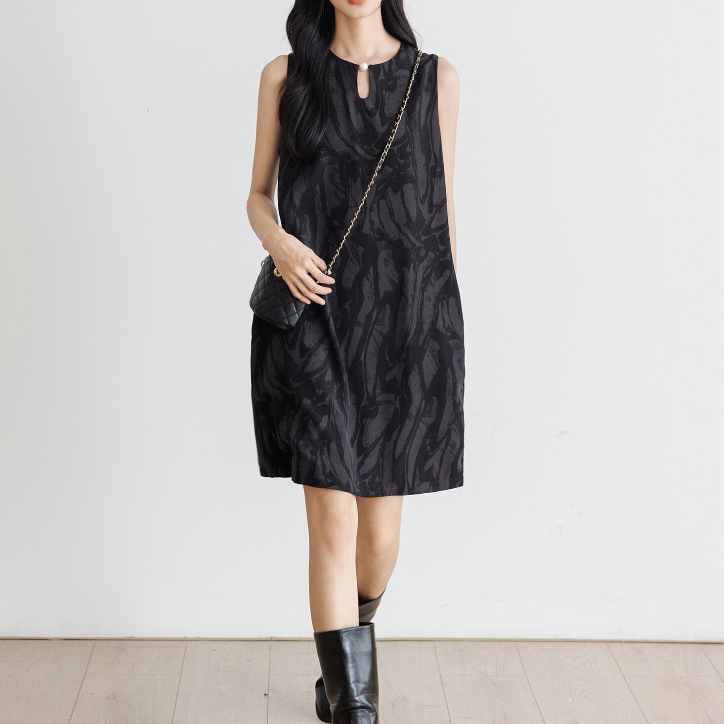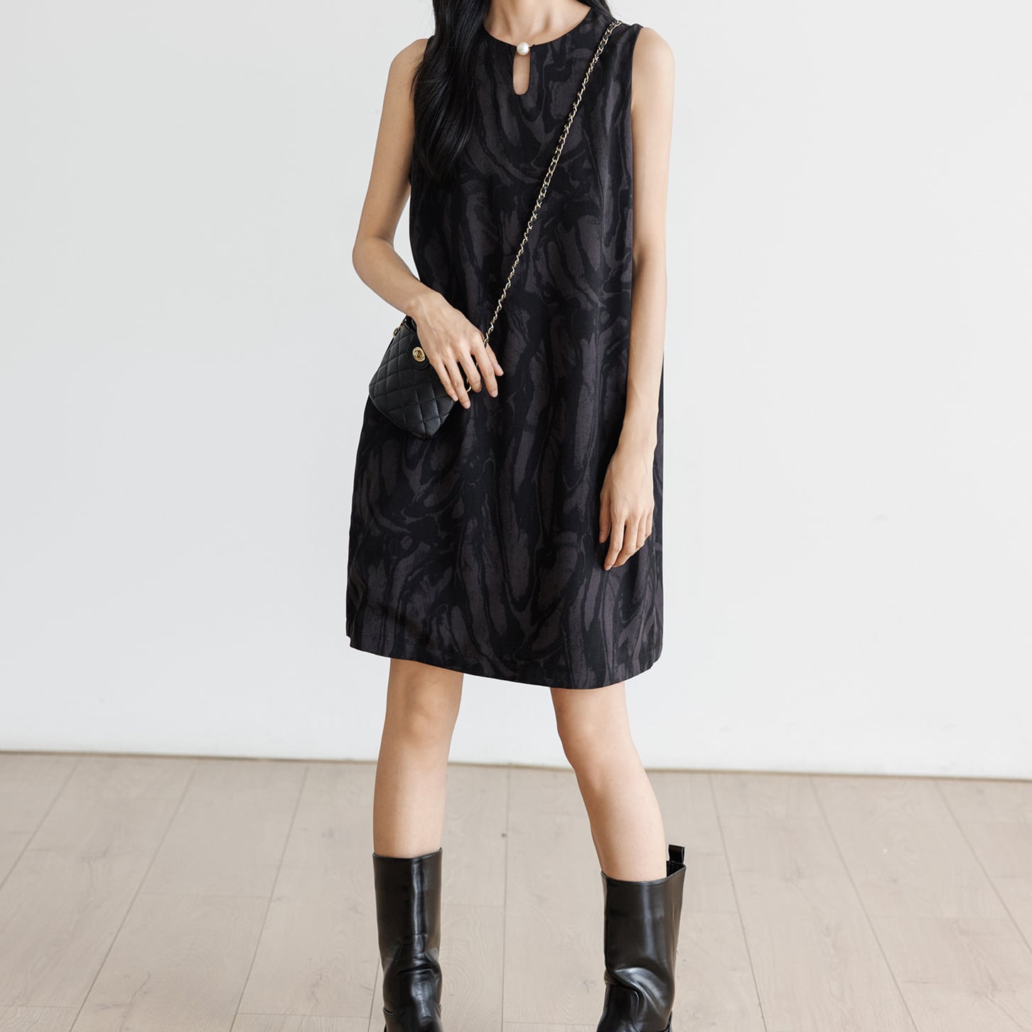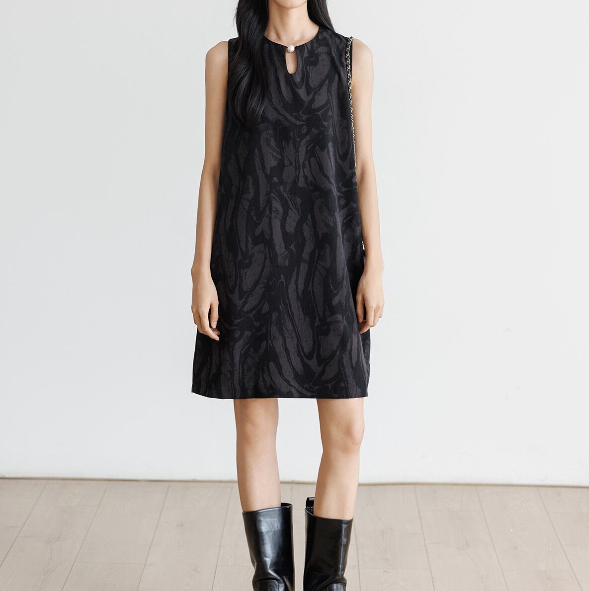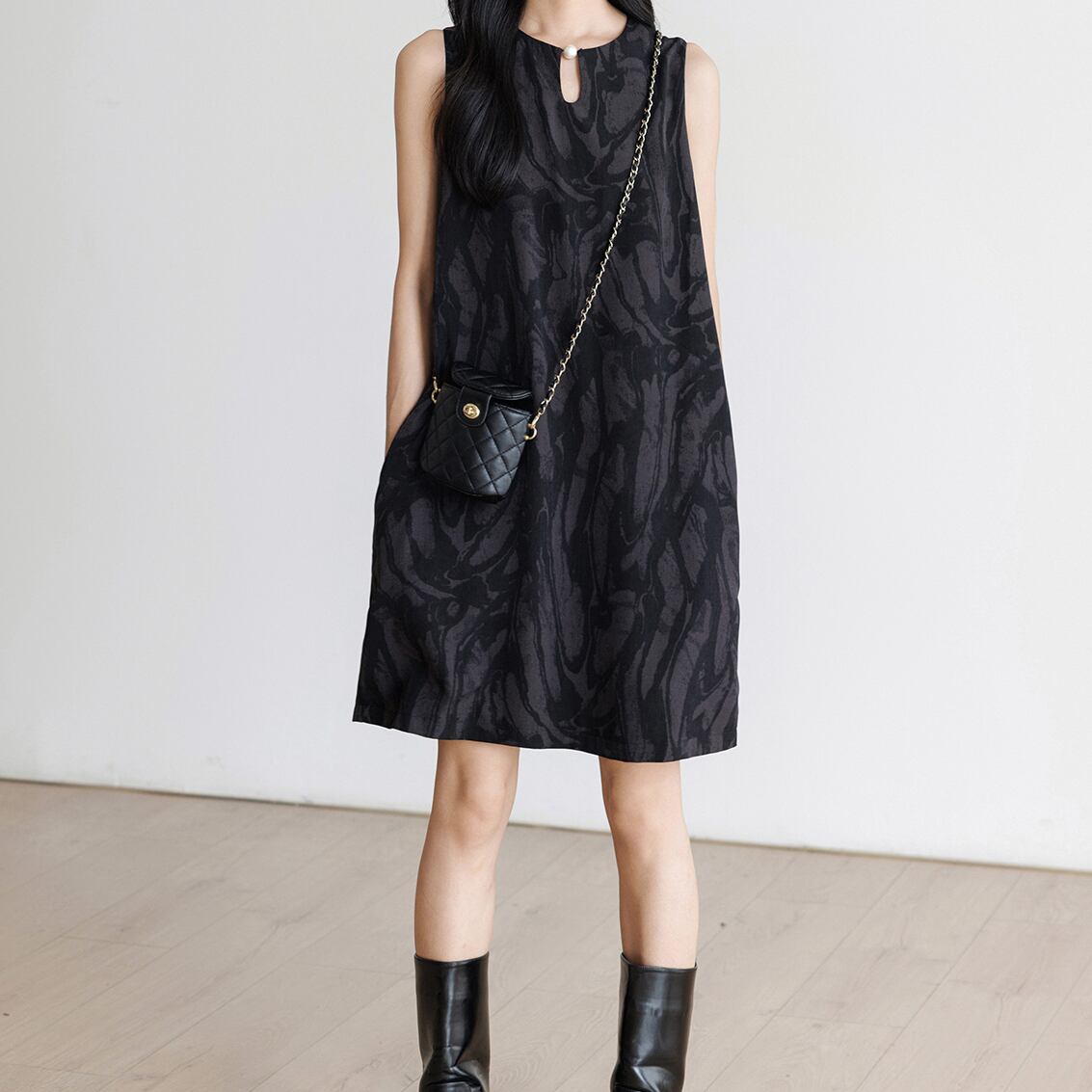 ノースリーブのミニマルな佇まいが、デザインの美しさを際立たせ、洗練された大人の余裕を演出。