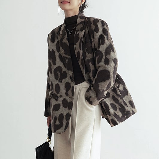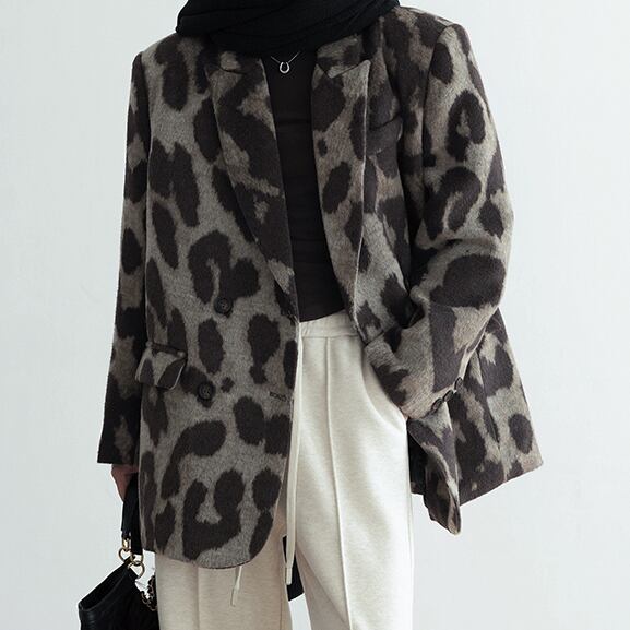 上品なレオパード柄が、大人の女性の魅力を最大限に引き出すカジュアルジャケット。
