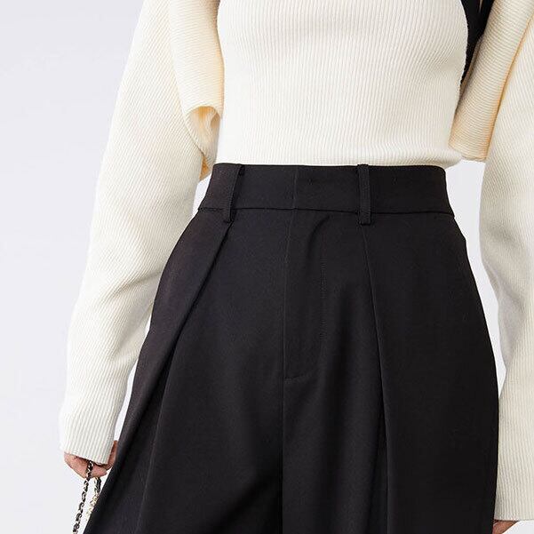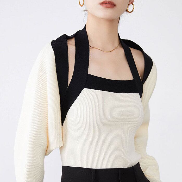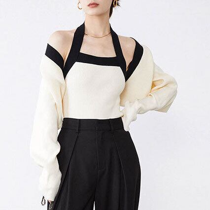 美しく見えるよう計算された丈感とネックラインのタンクトップに、ショールは程よいゆとりで体型カバーも叶える絶妙なシルエット。