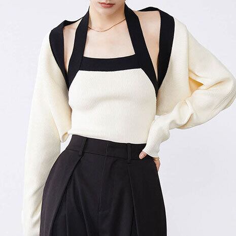 ノースリーブのトップスとふんわりショールのセットアイテム。