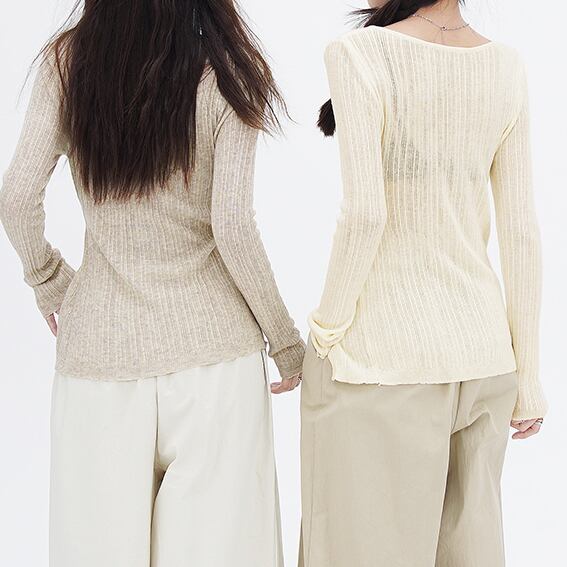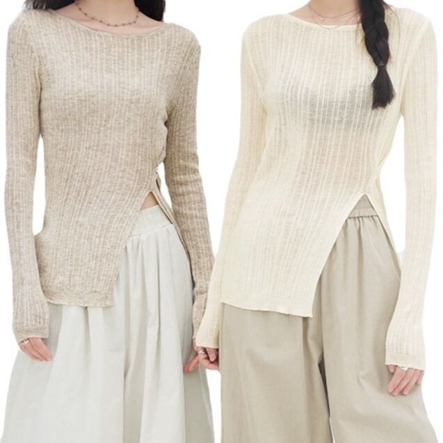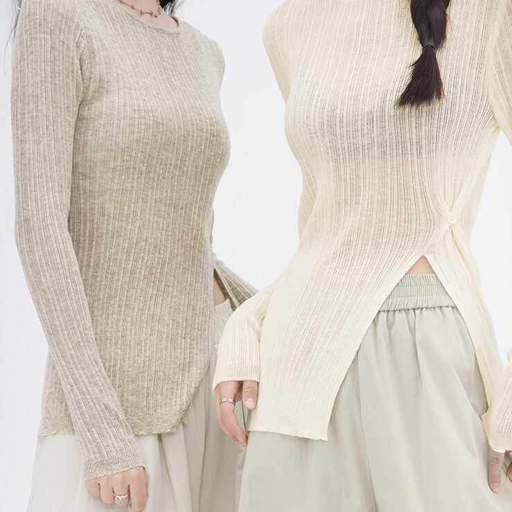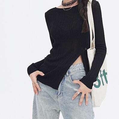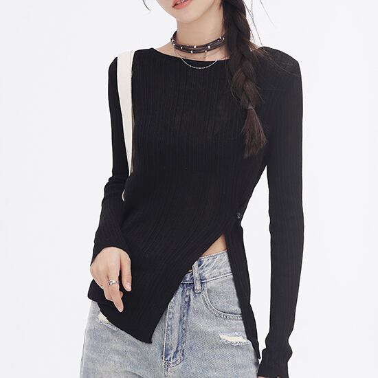 Diagonal button split knit top S46