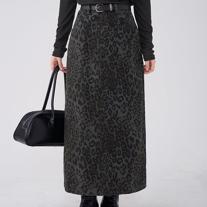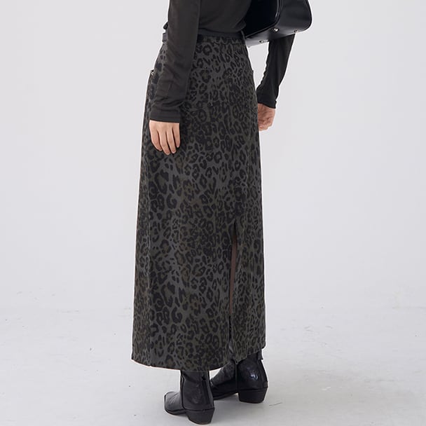 Leopard Back slit skirt S52