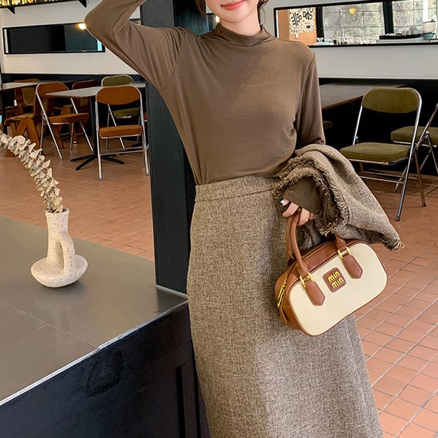 スカートは程よい丈感が上品で、オフィスからカジュアルまで幅広く対応◎