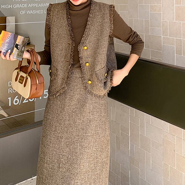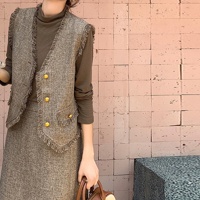 Designer vest & shirt & skirt set S57