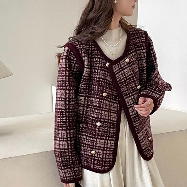 クラシカルなツイード素材とダブルブレストデザインが融合した、格上げジャケット。