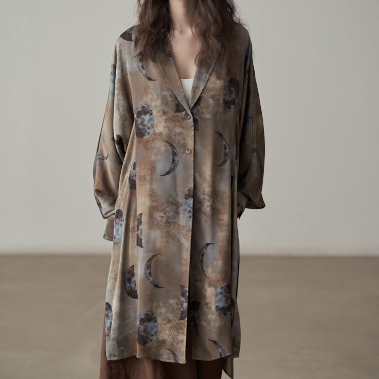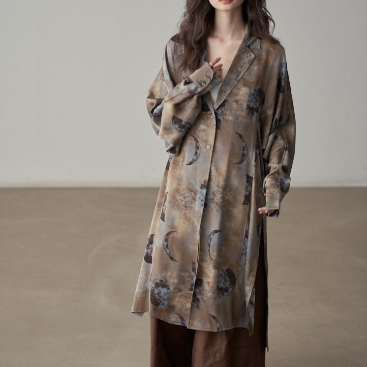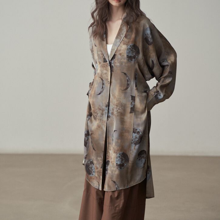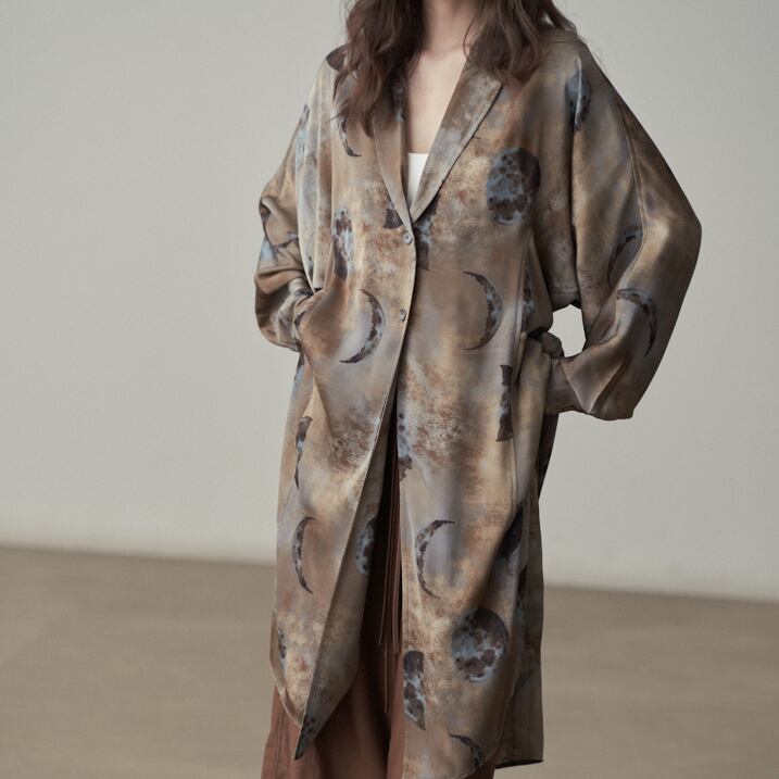 洗練されたインクムーンデザインが魅力のロングカーディガンです。
