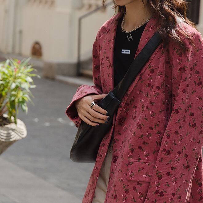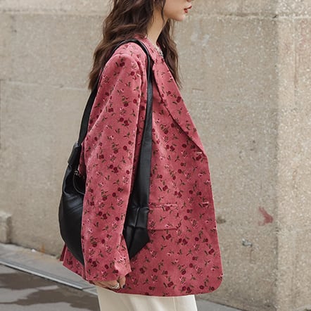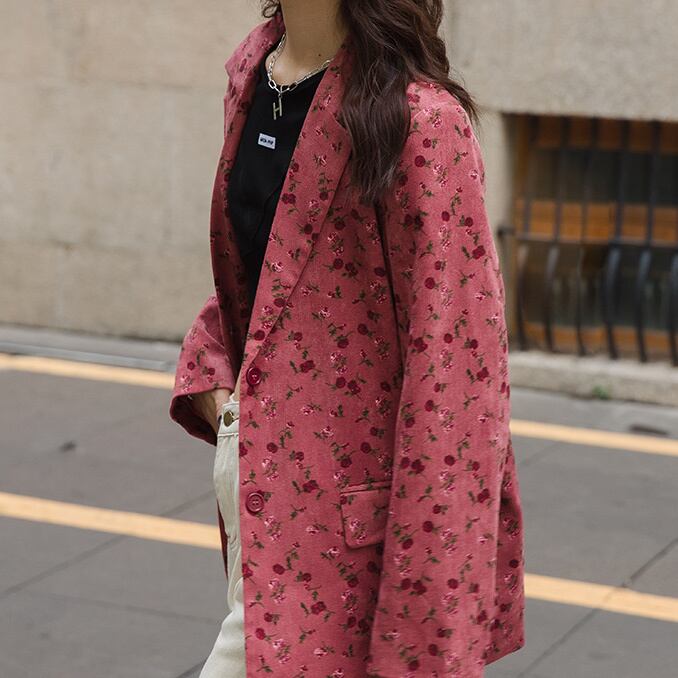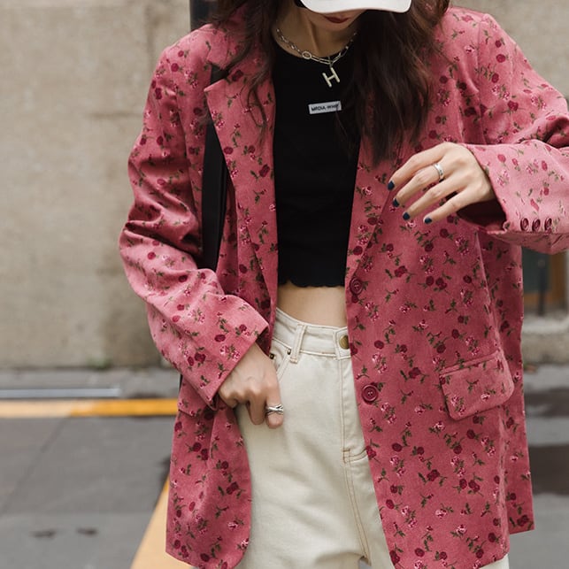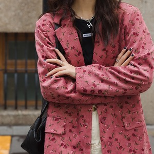 Red floral single-breasted jacket S88