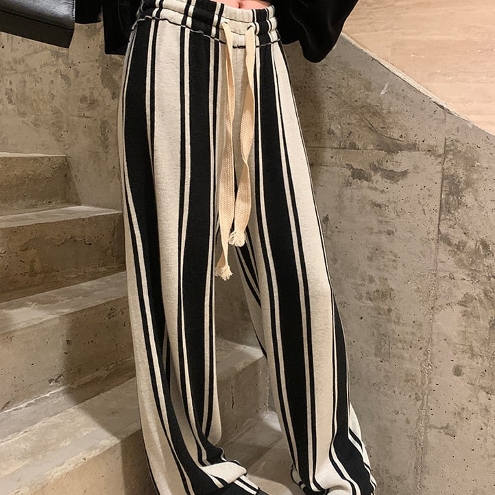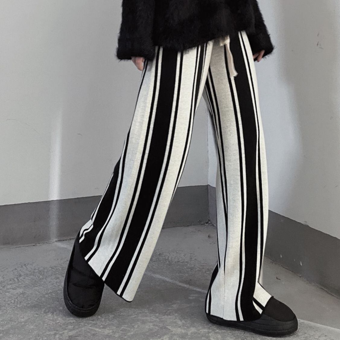 Striped knit wide leg pants S106