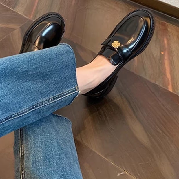 〜ゴールドが輝く、足元革命〜 クラシックなローファーデザインの上品さはそのままに、厚底ソールがさりげなくスタイルアップを実現。 重厚感のあるソールは見た目以上に軽く、長時間の歩行でも疲れにくい設計です。 アクセントとなるゴールドバックルは、シンプルなブラックレザーに洗練された華やかさをプラス。 マニッシュにもフェミニンにも寄り添う絶妙なバランスで、パンツスタイルからスカートコーデまで、幅広く活躍します。 ✔️おすすめのスタイリング ・デニムを合わせてデイリーカジュアルコーデ。 ・ワンピースに合わせてエレガントに仕上げる。 ・ジャケットスタイルに合わせてフォーマルなスタイルにも◎ ■カラー ブラック ■サイズ 35 22.5cm 36 23cm 37 23.5cm 38 24cm 39 24.5cm ヒールの高さ:約4cm ※採寸方法により1~3cmの誤差がある場合がございます。 ■商品番号 S118 ・・━━・・━━・・━━・・━━・・━━・・━━・・ 【お届けについて】 当ショップの商品は海外より取り寄せ・発送となる為、ご入金から3~4週間前後で発送いたします。 【お支払い方法について】 ・クレジットカード決済(VISA/Master/JCB/AMERICAN EXPRESS) ・キャリア決済(docomo/au/Softbank/Y!mobile) ・あと払い Pay ID 決済 【注意事項】 ・商品の在庫切れや生産中止、生産遅延が発生した場合は、注文キャンセルをさせていただく恐れがございます。予めご了承くださいませ。 ・こちらは輸入品となります。日本製品とは検品基準が異なるため、新品未使用品でもごくわずかな汚れや傷がある場合もございます。 ・イメージ違いやサイズ・カラー相違による返品・交換はお断りしております。 ・お手持ちのスマートフォンやパソコンの液晶環境によって、商品のお色味が若干異なる場合がございます。 ・発送時期によりデザイン仕様(素材や細部)の変更がある場合がございます。 ご購入前にこちらをお読みください →https://solemy.base.shop/blog/2024/11/20/121101 ・・━━・・━━・・━━・・━━・・━━・・━━・・