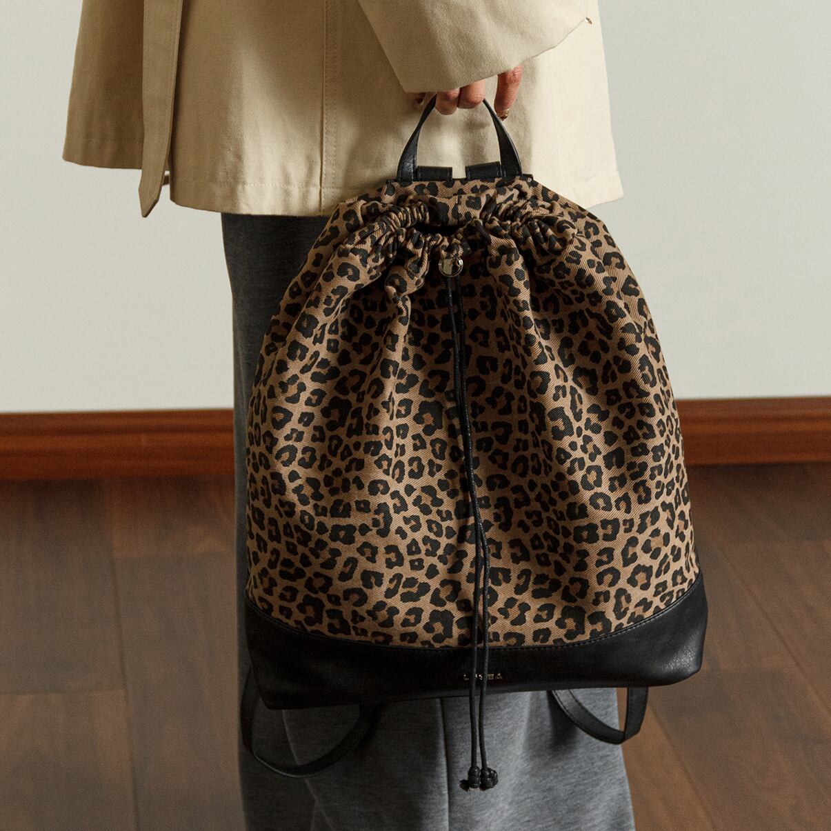 大胆なレオパード柄がコーディネートの主役になるバックパック。