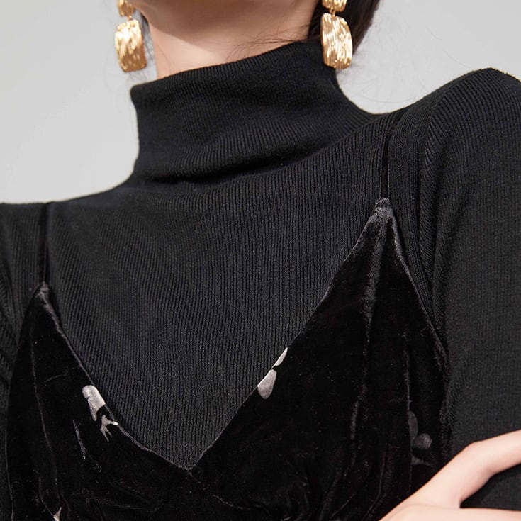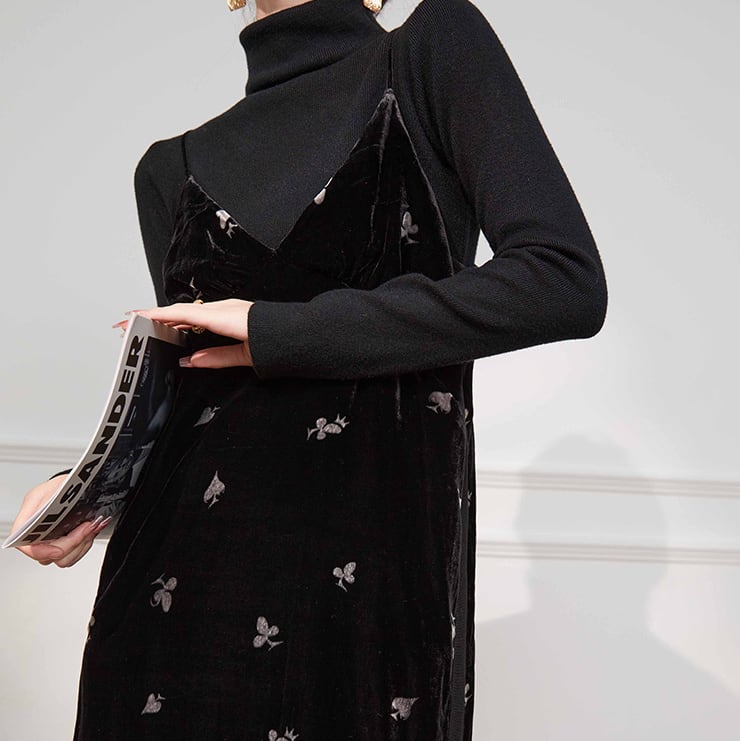 深みのあるブラックカラーとベルベットの上品な光沢が、大人の色気を演出。