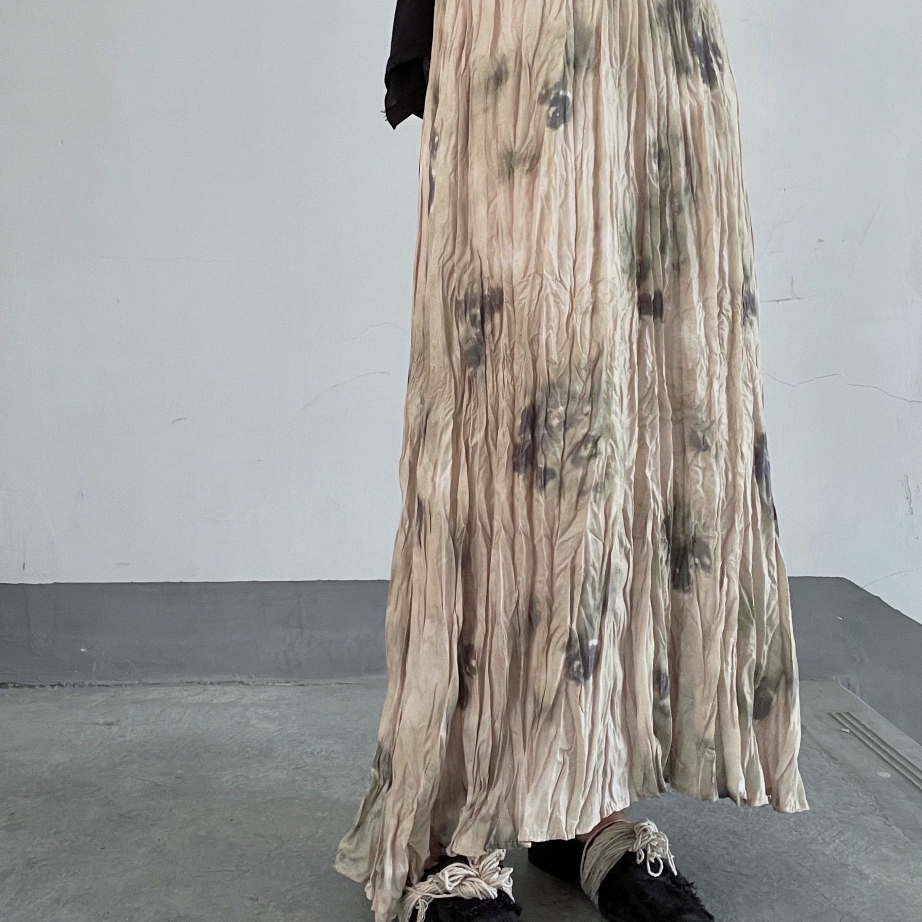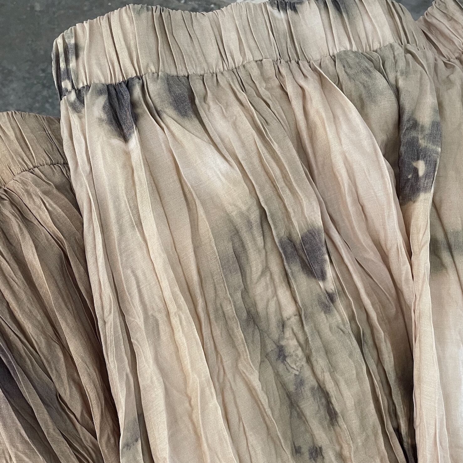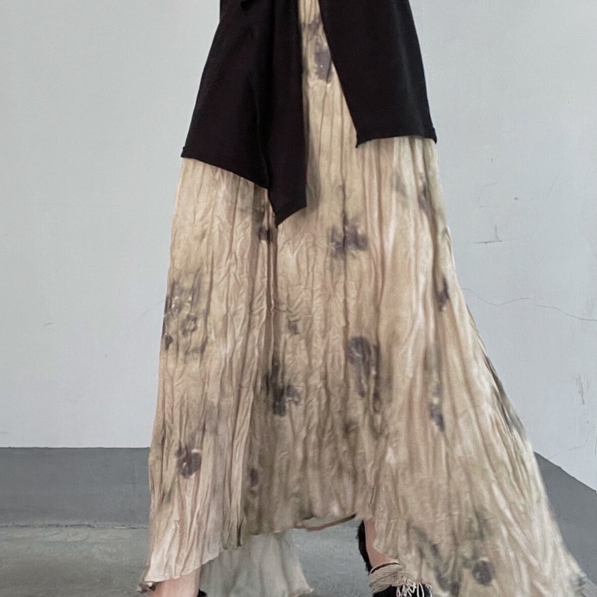 独特な柄とシワ加工が高級感を演出し、エレガントな印象を与える一着となっています。