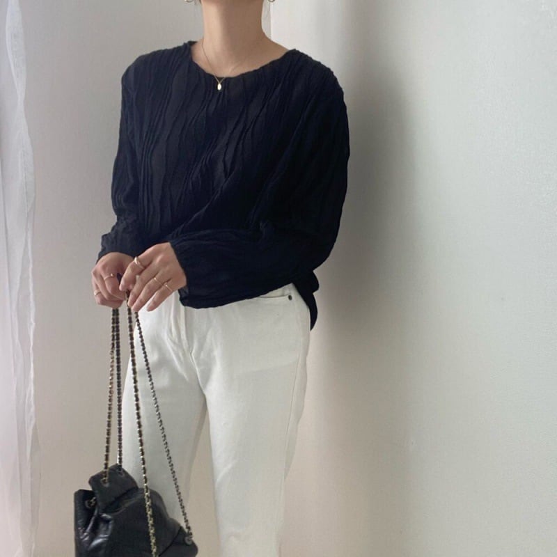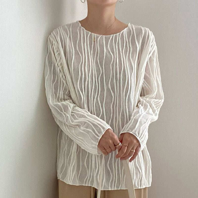 立体的なウェーブ柄が魅力的なシアートップスです。