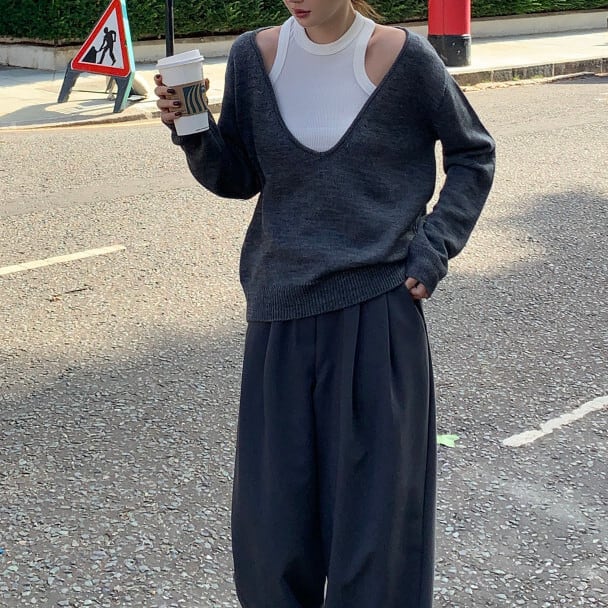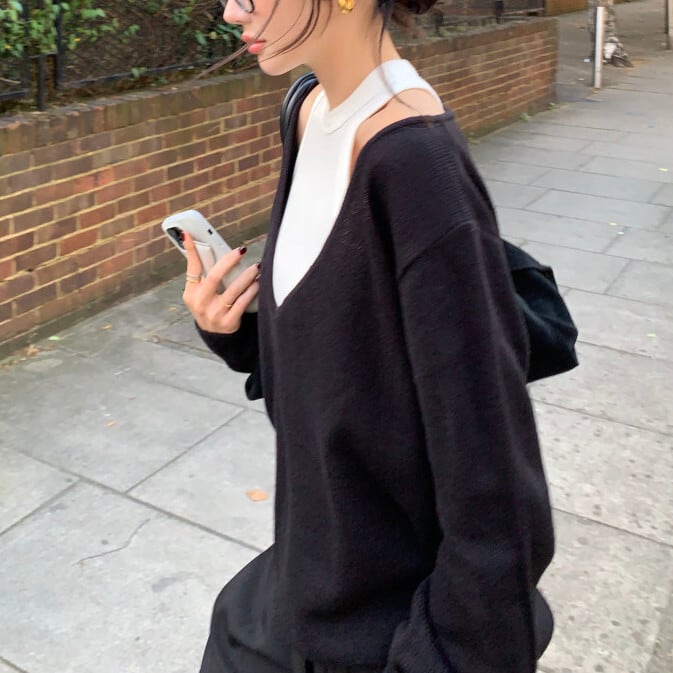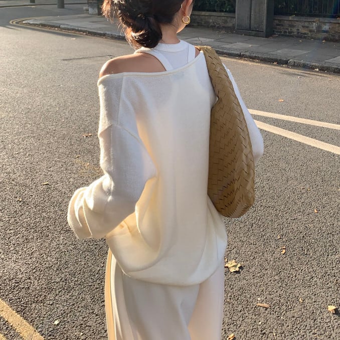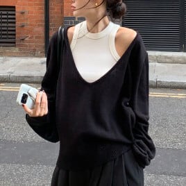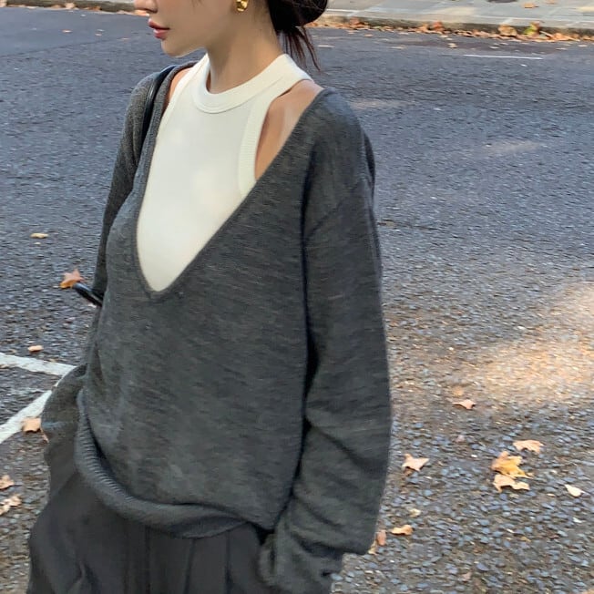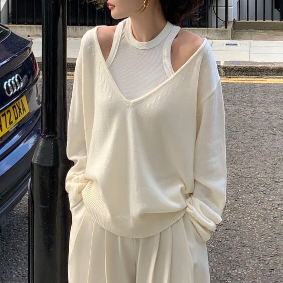 タンクトップとVネックのプルオーバーニットのセット商品。