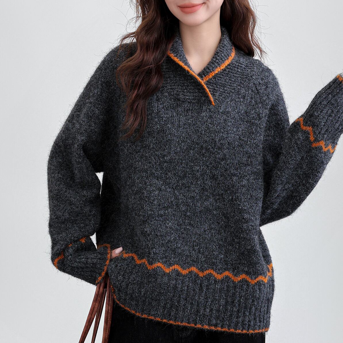 バイカラーミックスのプルオーバーセーターです。