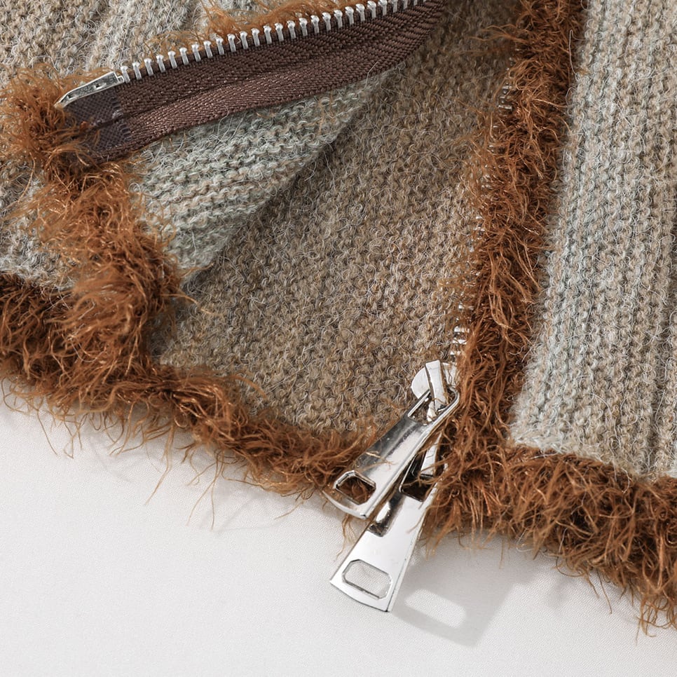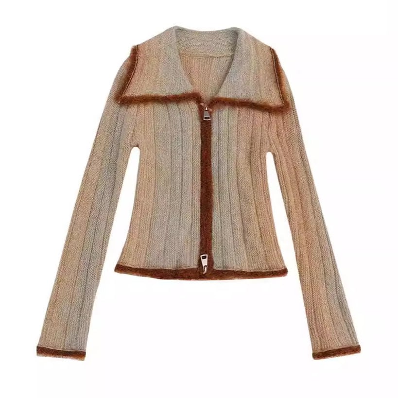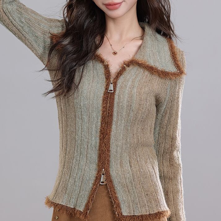 角度によって表情を変える繊細な色合いに、上品なブラウンの縁取りが洗練されたアクセントを添えます。ダブルジップ仕様で表情を自在に変えられる、デザイン性の高さも魅力。