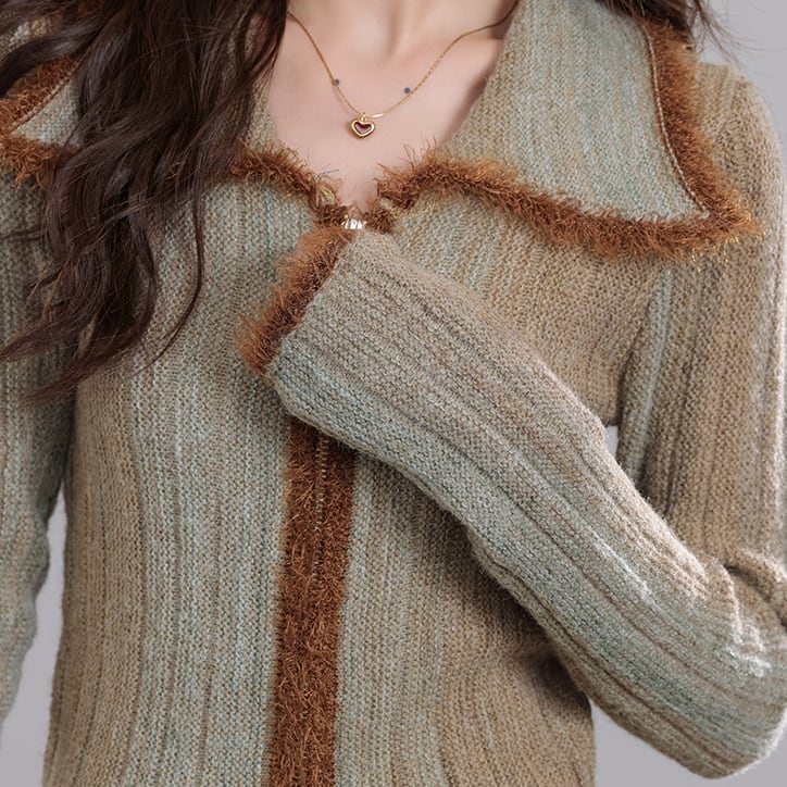 まるで光が織り込まれたような、幻想的なオーロラカラーが主役のカーディガン。