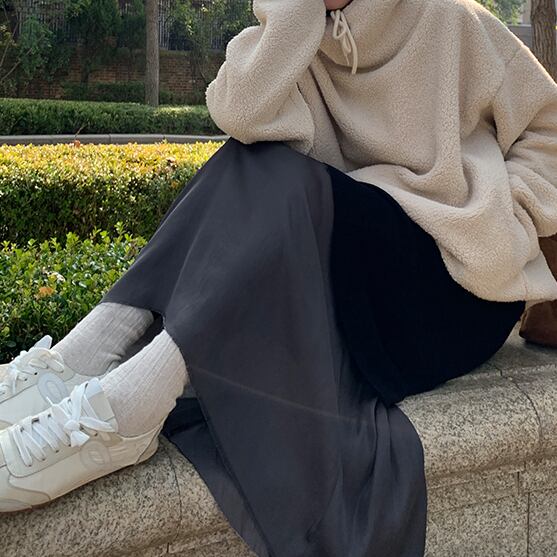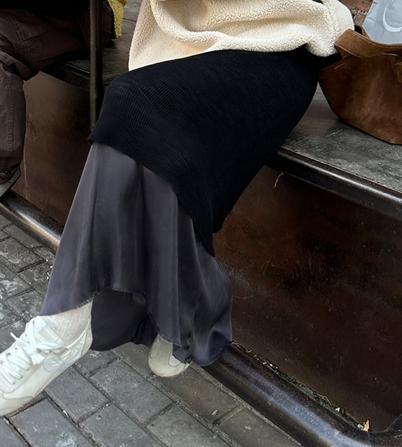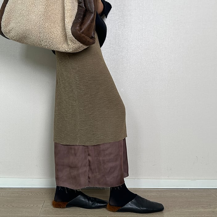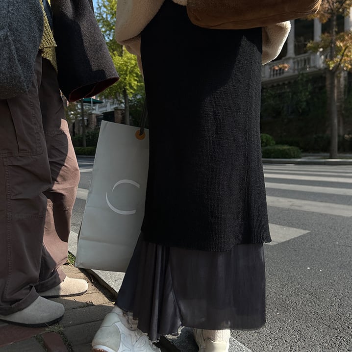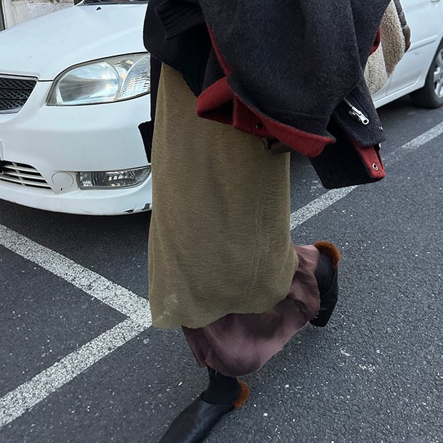 絶妙な配色と、計算されたレイヤードデザインが、歩くたびに表情を変える特別なスカート。