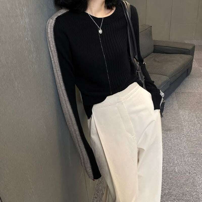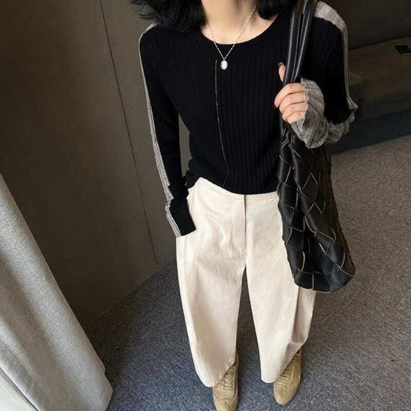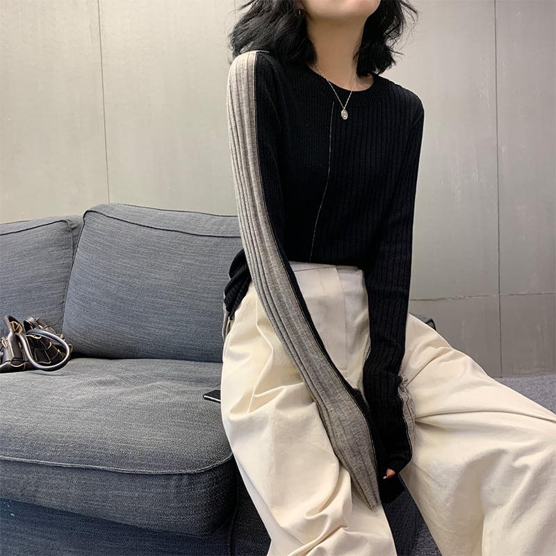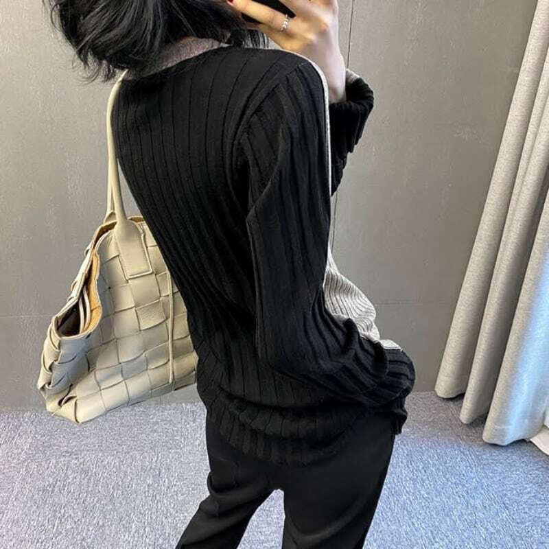 グレーとブラックの絶妙なバイカラー配色が、このニットの最大の魅力。
