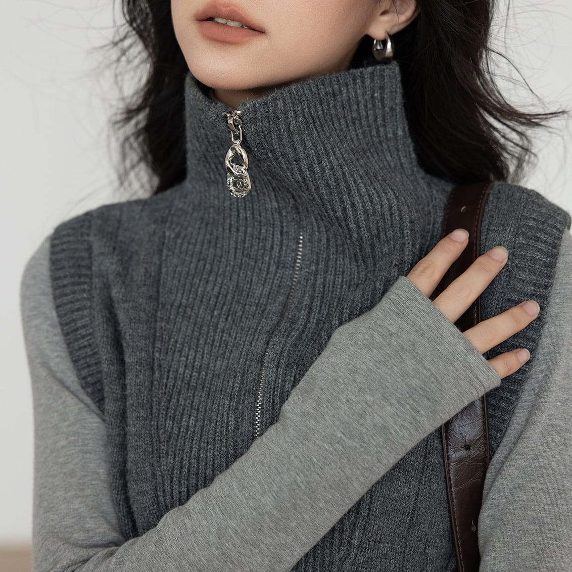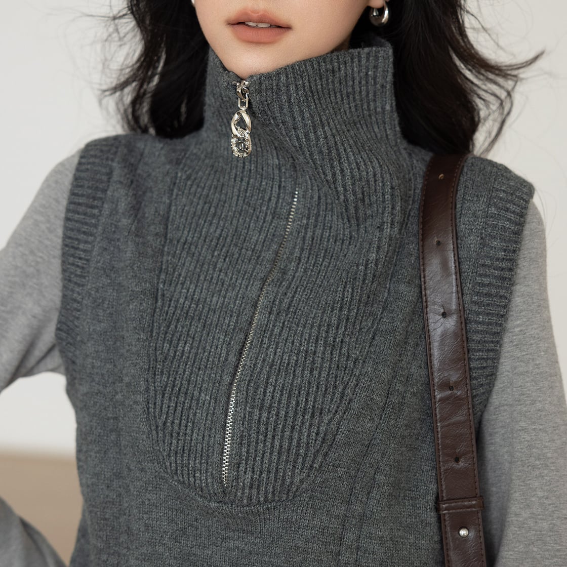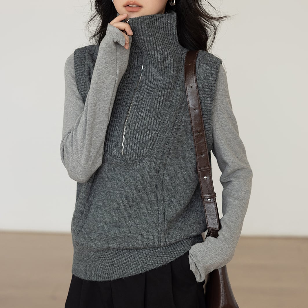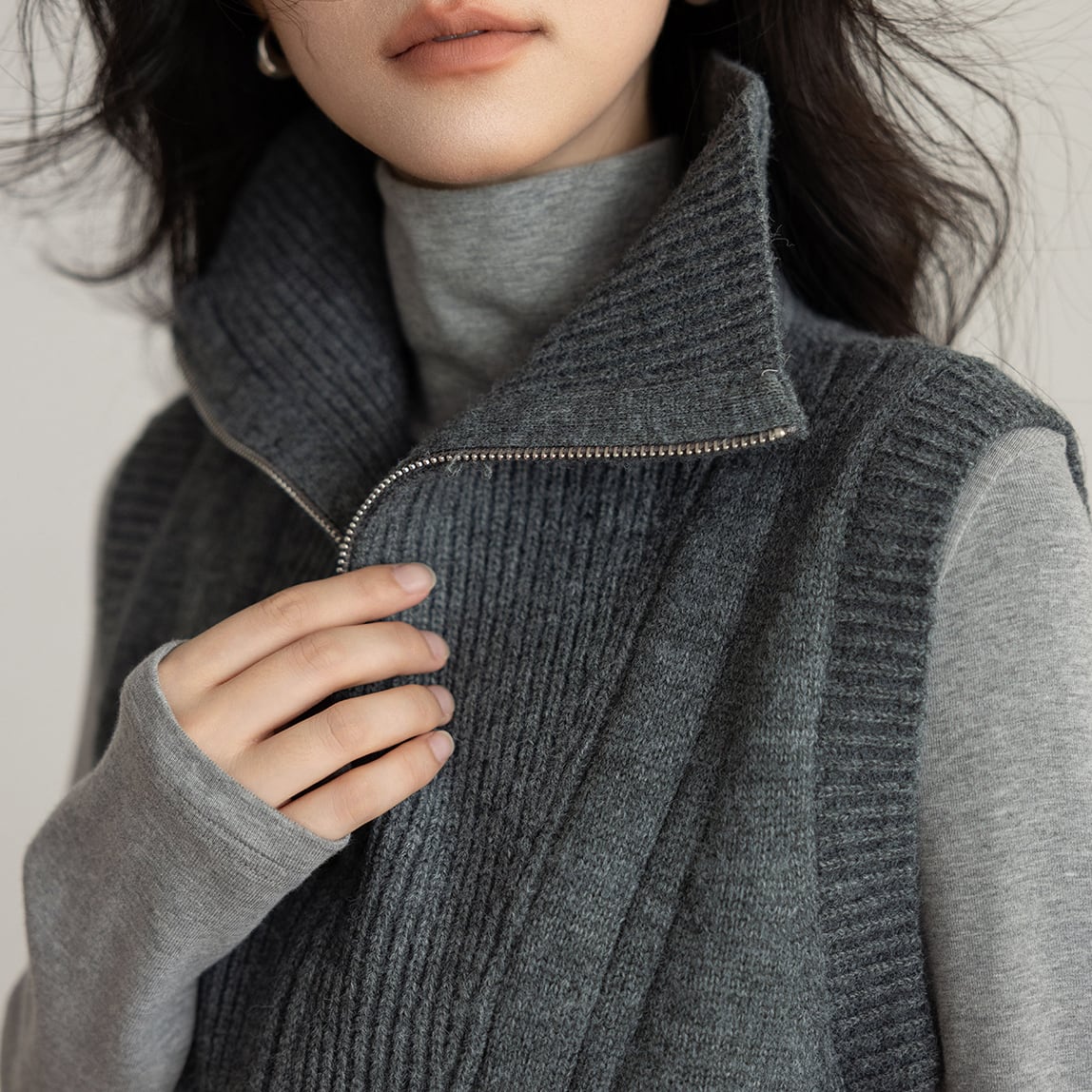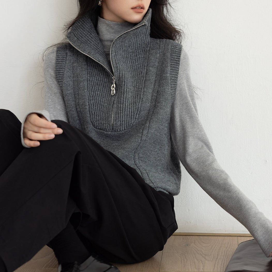 トレンドのベストレイヤードを手軽に楽しめる、ニットベスト。