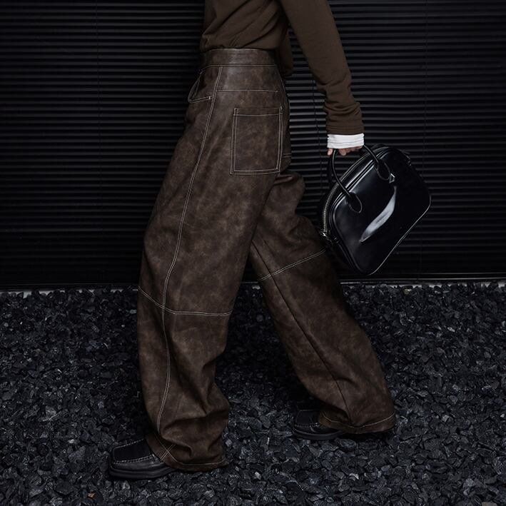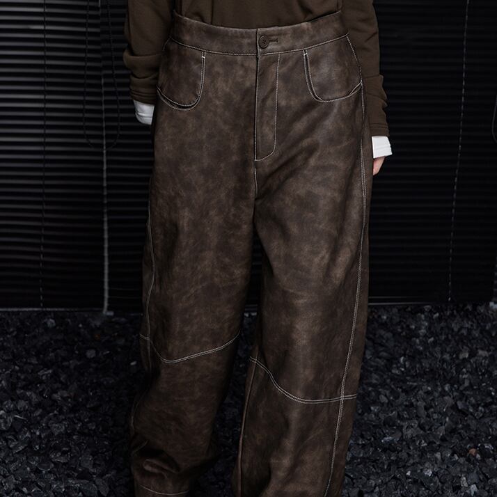 膝のスイッチングデザインがオシャレなワイドレッグパンツです。
