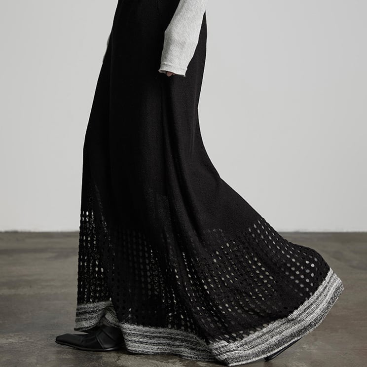 腰回りから裾に向かって広がる美しいシルエットで、体型カバーも実現。