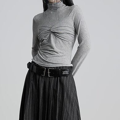 ツイストのリングデザインが魅力のタートルネックシャツです。