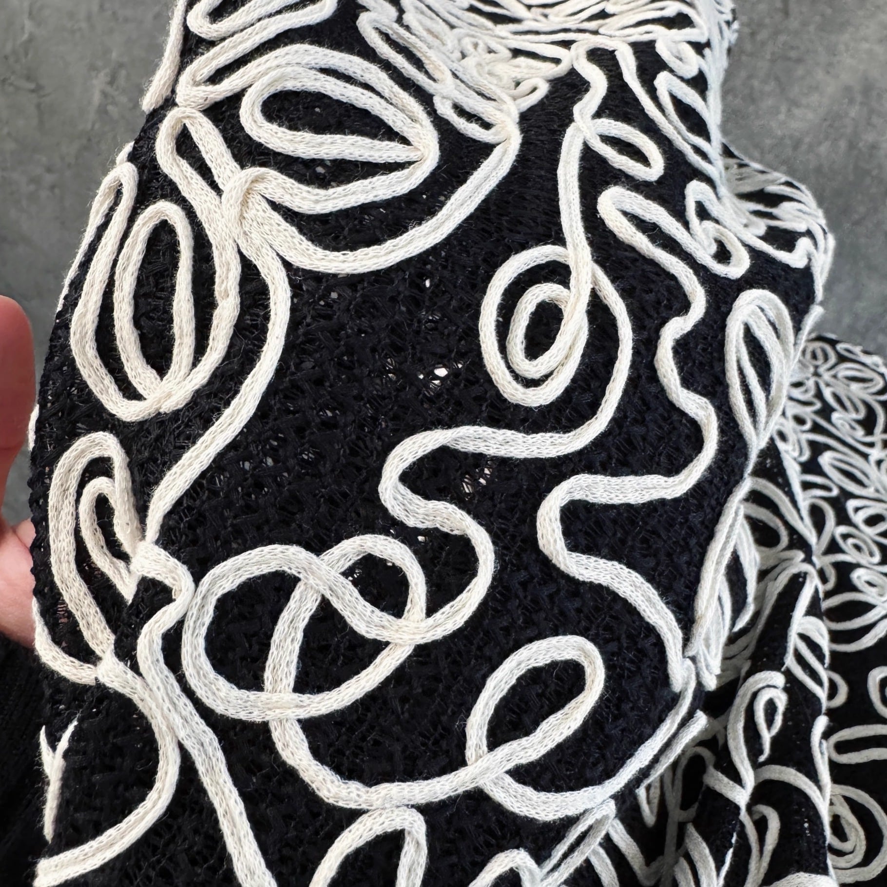 黒地に白の刺繍が浮かび上がる、コントラストの美しさ。