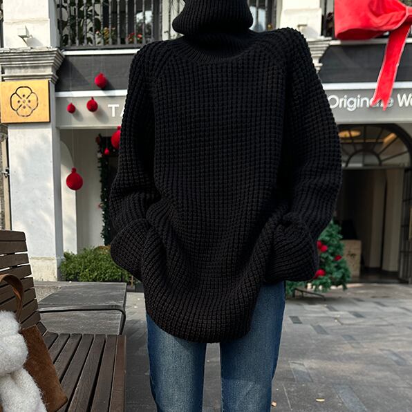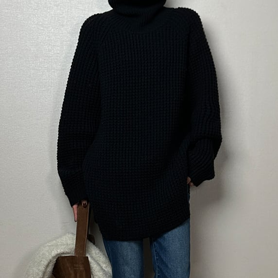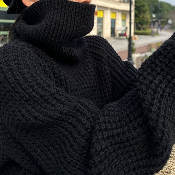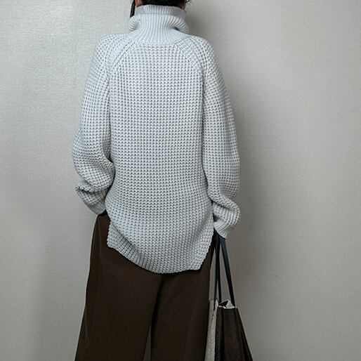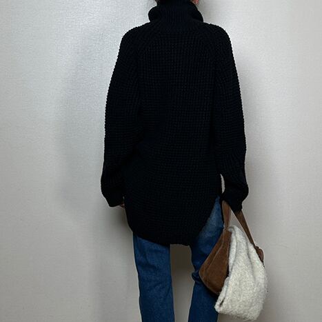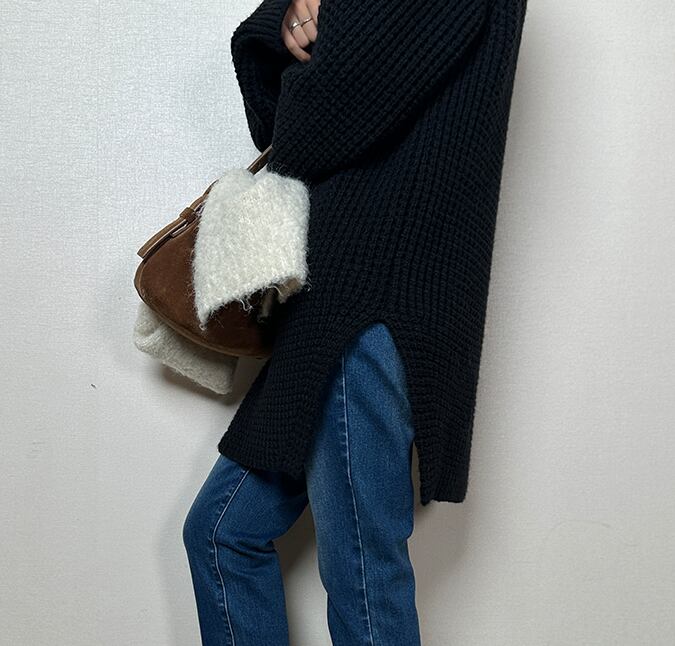 ざっくりとした編み地とゆったりシルエットが魅力の、この冬手放せなくなる一枚。