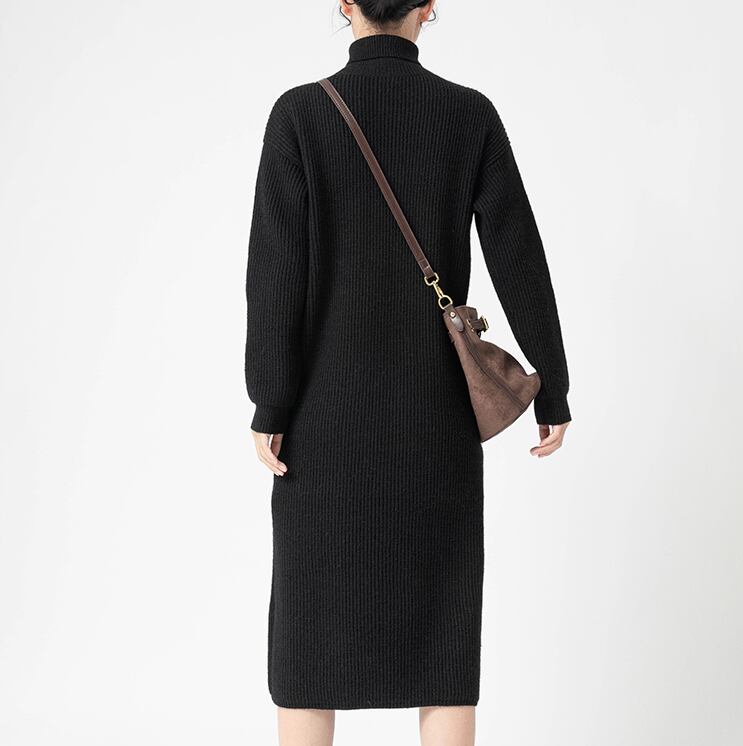 首元まで美しくカバーするハイネックが、このワンピースの主役。