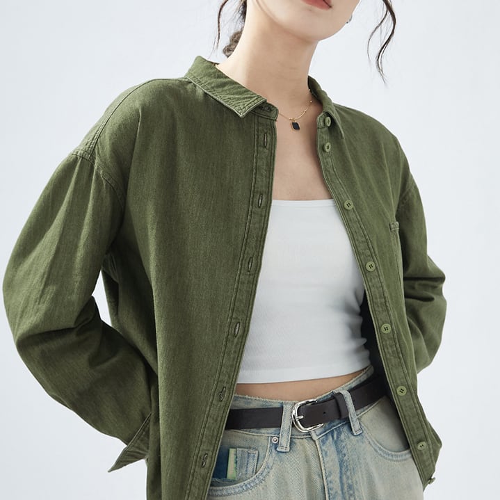 シンプルでありながら個性的なカラーが特徴のデニムシャツ。