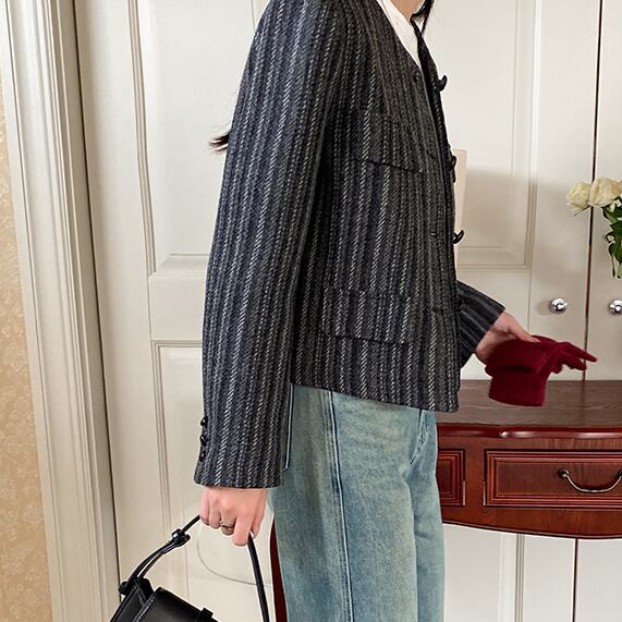 No-collar striped jacket S294