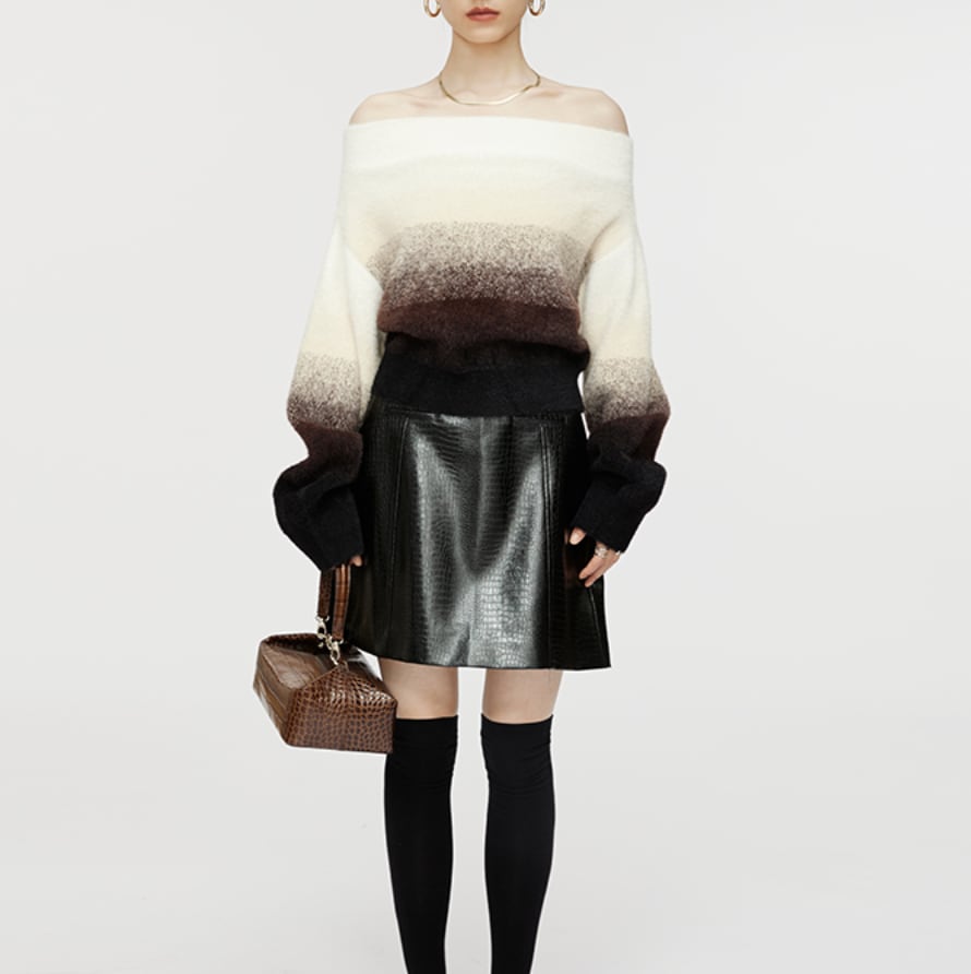 繊細に移り変わるグラデーションカラーが目を惹く、オフショルダー2wayセーター。