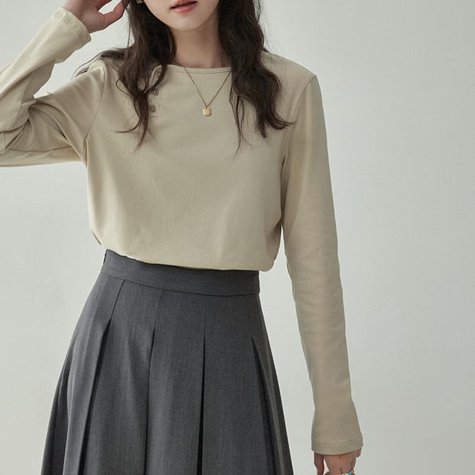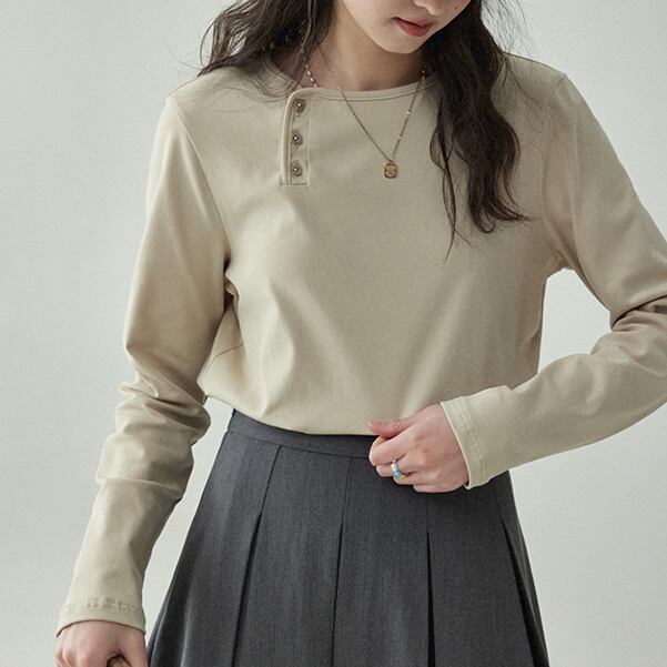 Irregular button bottoming shirt S325