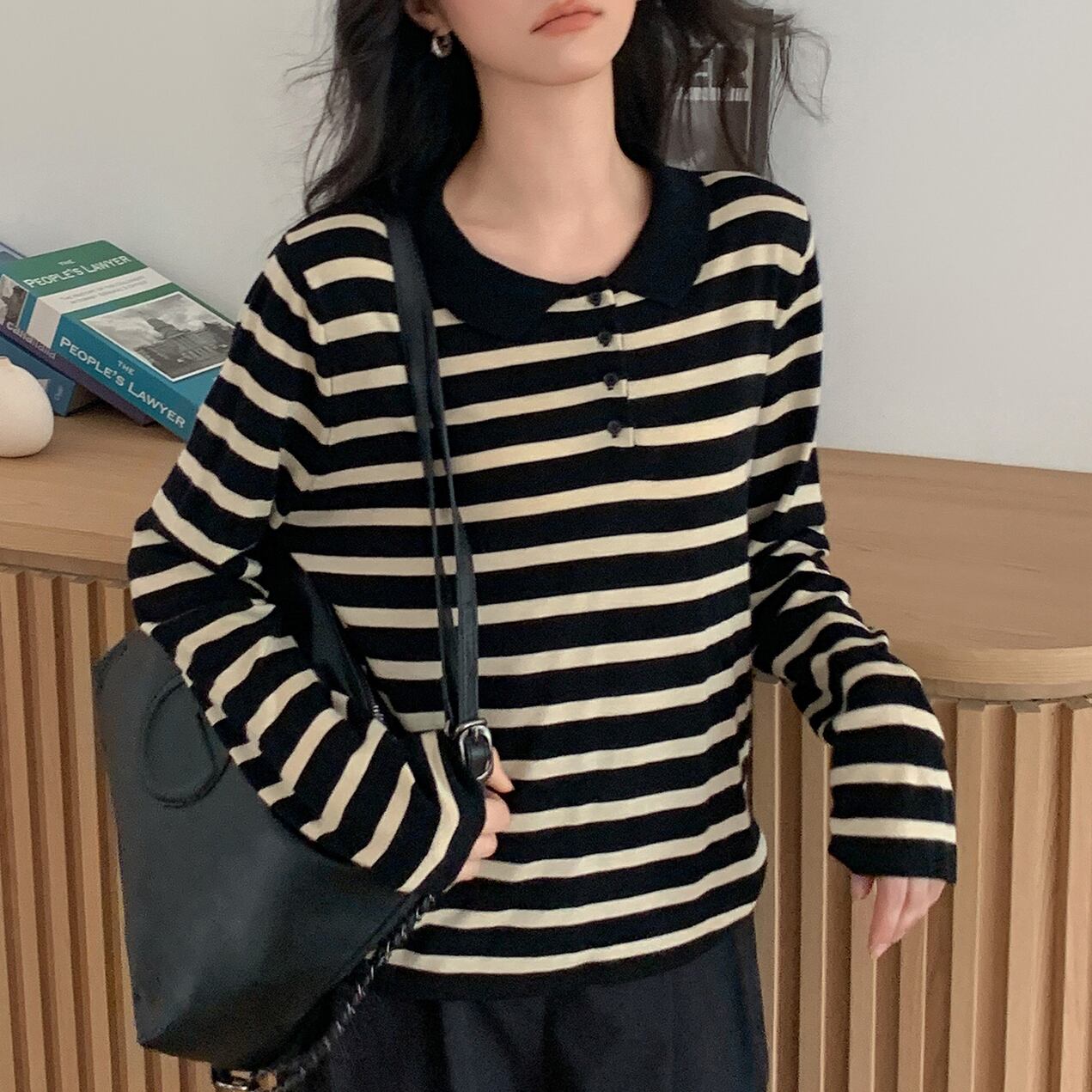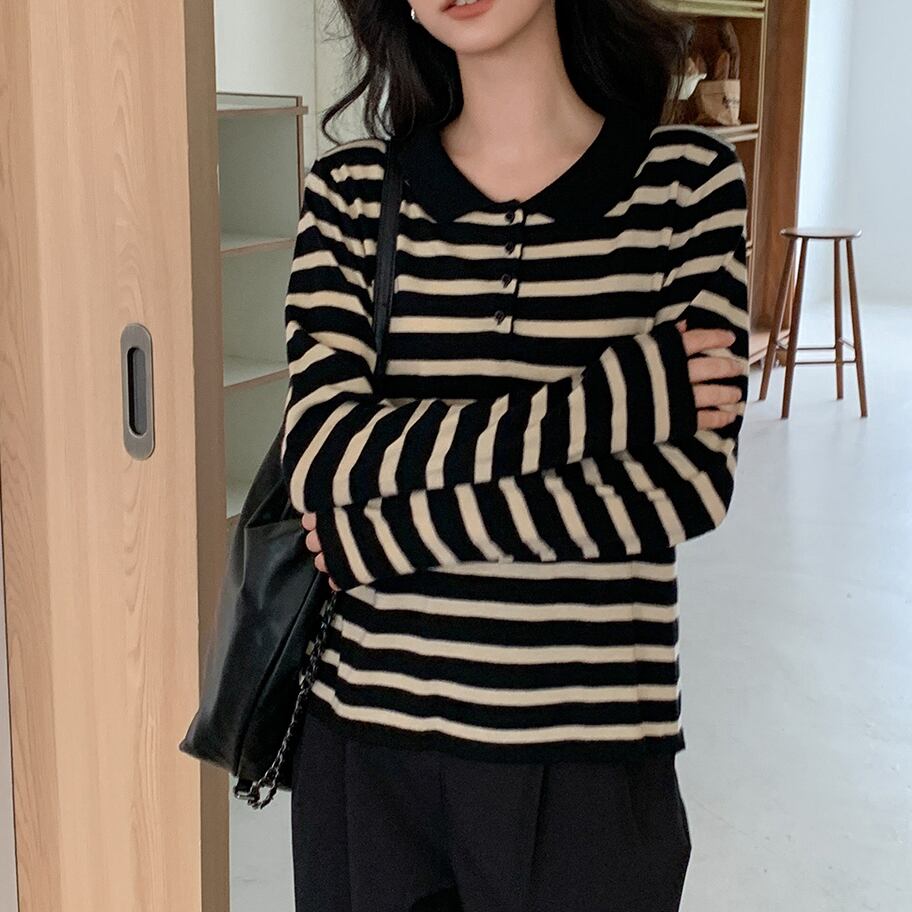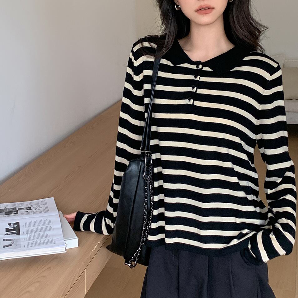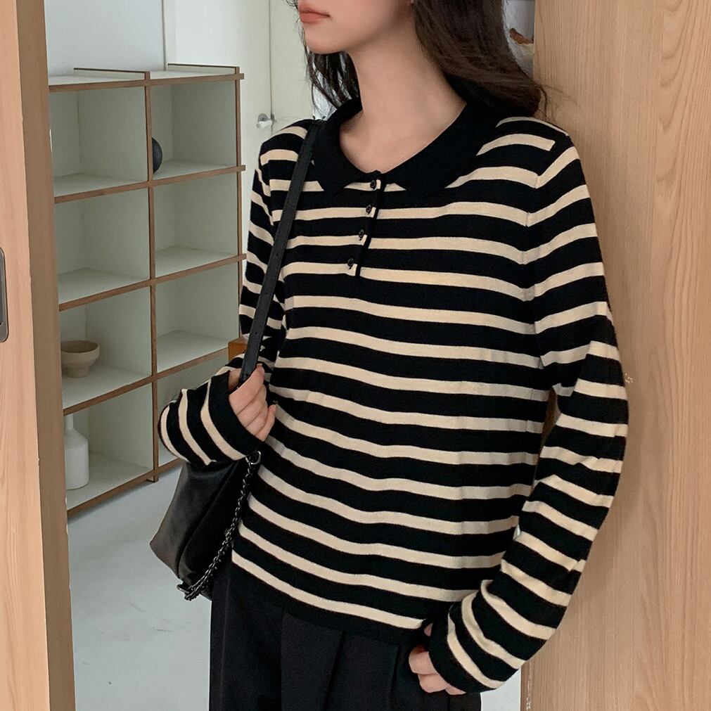 クラシックなボーダー柄にポロ襟を合わせた、上品カジュアルな一枚。