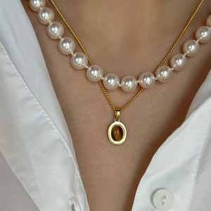 オーバル型の優しいフォルムは、女性らしさを引き立てながらも主張しすぎない絶妙なバランス。デコルテを上品に彩り、白シャツにもニットにも自然に馴染みます。