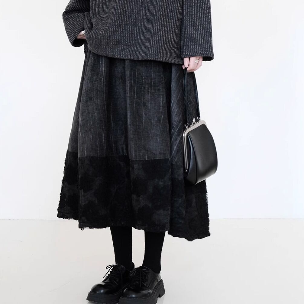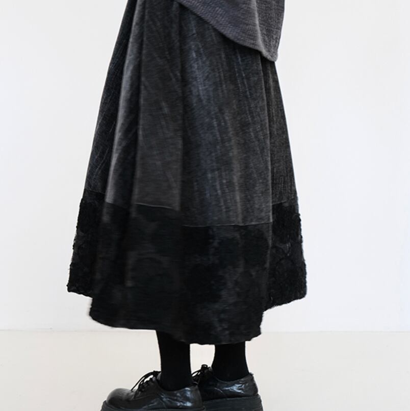フラワーメッシュのデザインが裾に施された切り替えスカート。